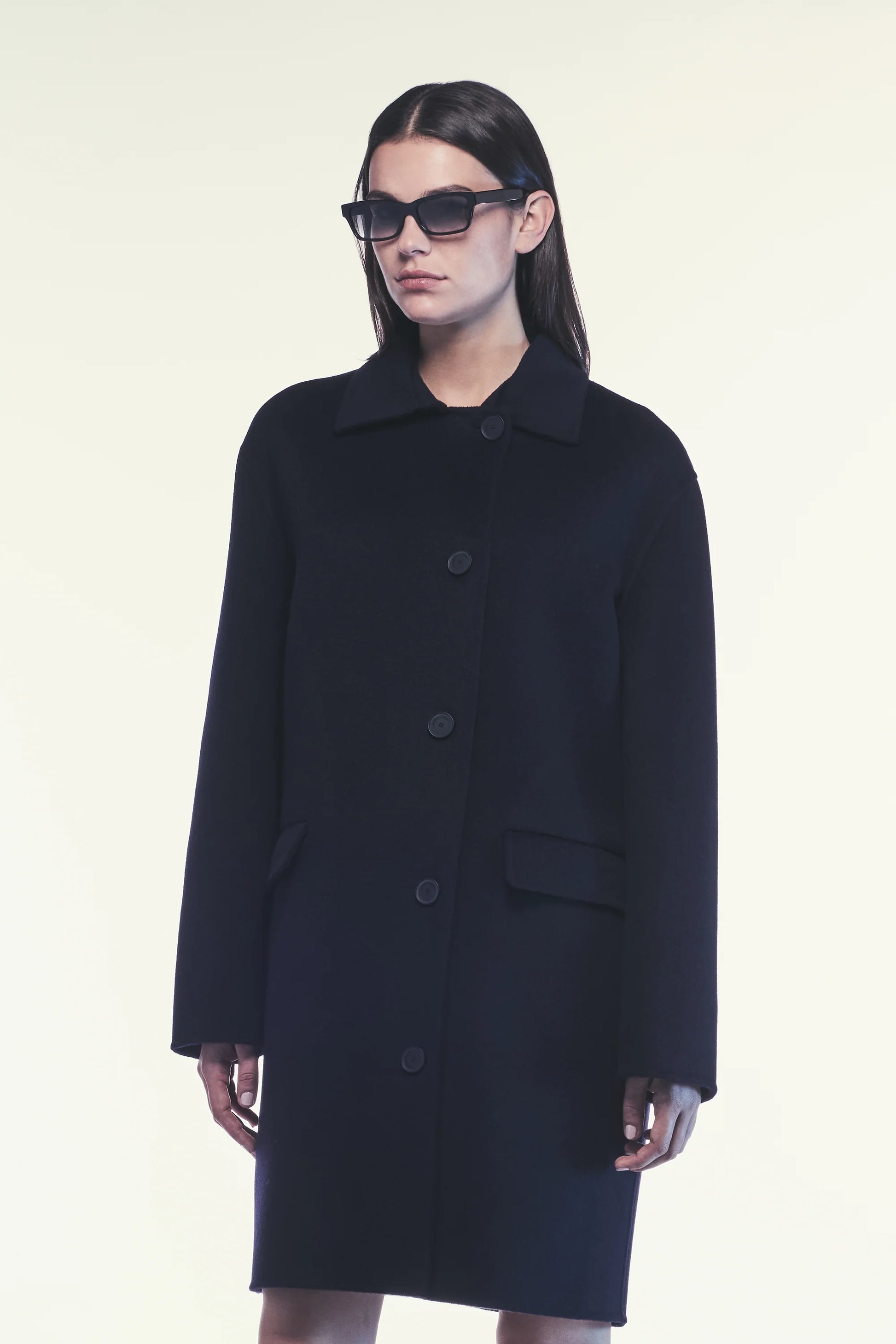 Abric curt de teixit doble 100% llana, amb tanca de botons frontal. Teixit d'alta qualitat per a un ajustament còmode. Disseny senzill i elegant.
