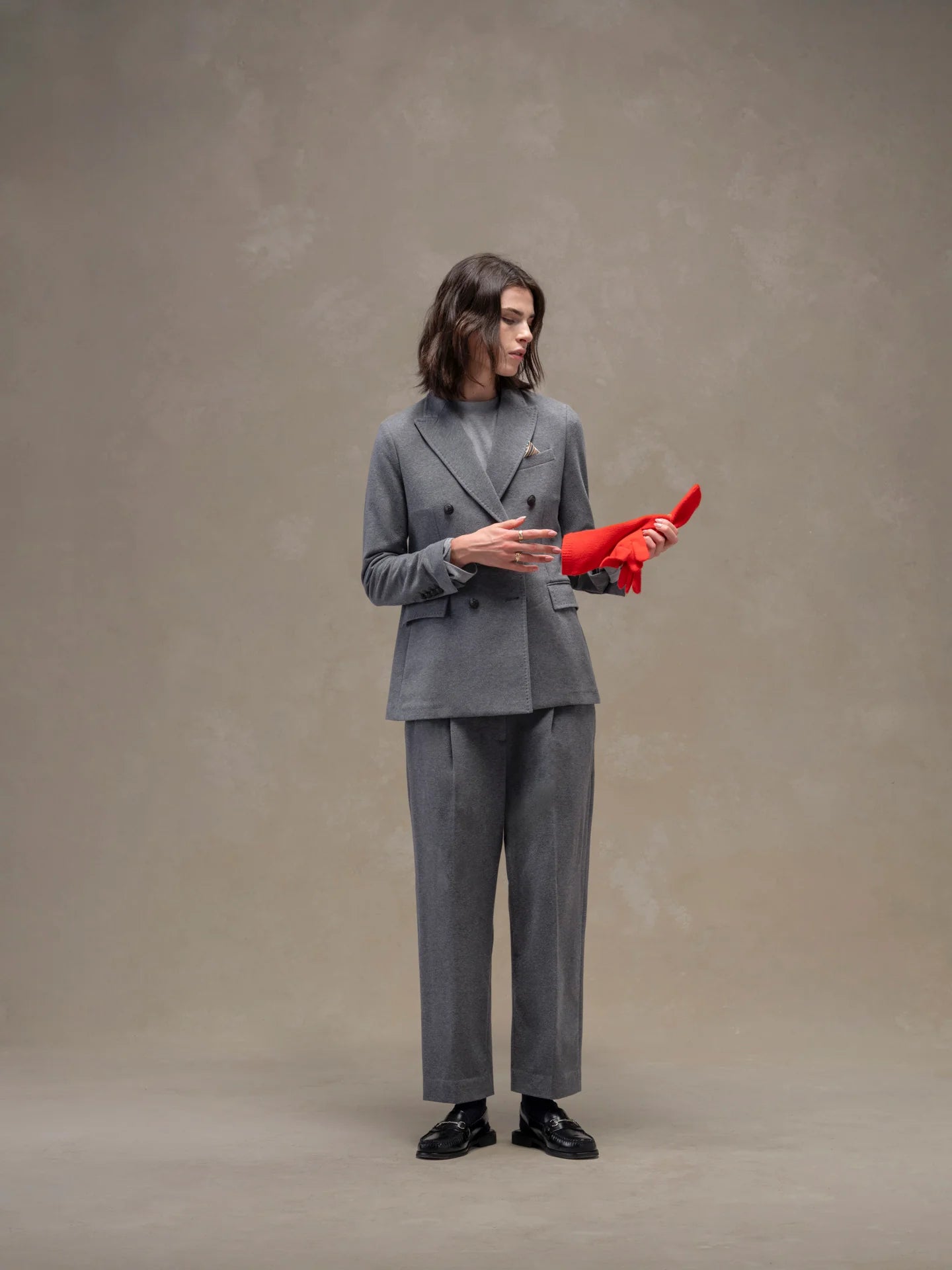 - Dues butxaques amb solapa i una butxaca ribetejada amb mocador.