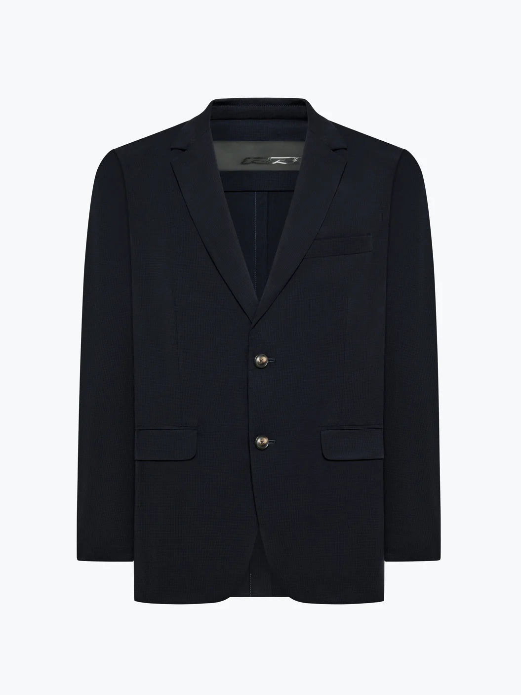 Aquesta americana de botonadura senzilla és una peça versàtil que es pot emportar amb confiança en les caloroses setmanes d'estiu, gràcies a l'exclusiu teixit elàstic Surflex®, ultralleuger i transpirable.