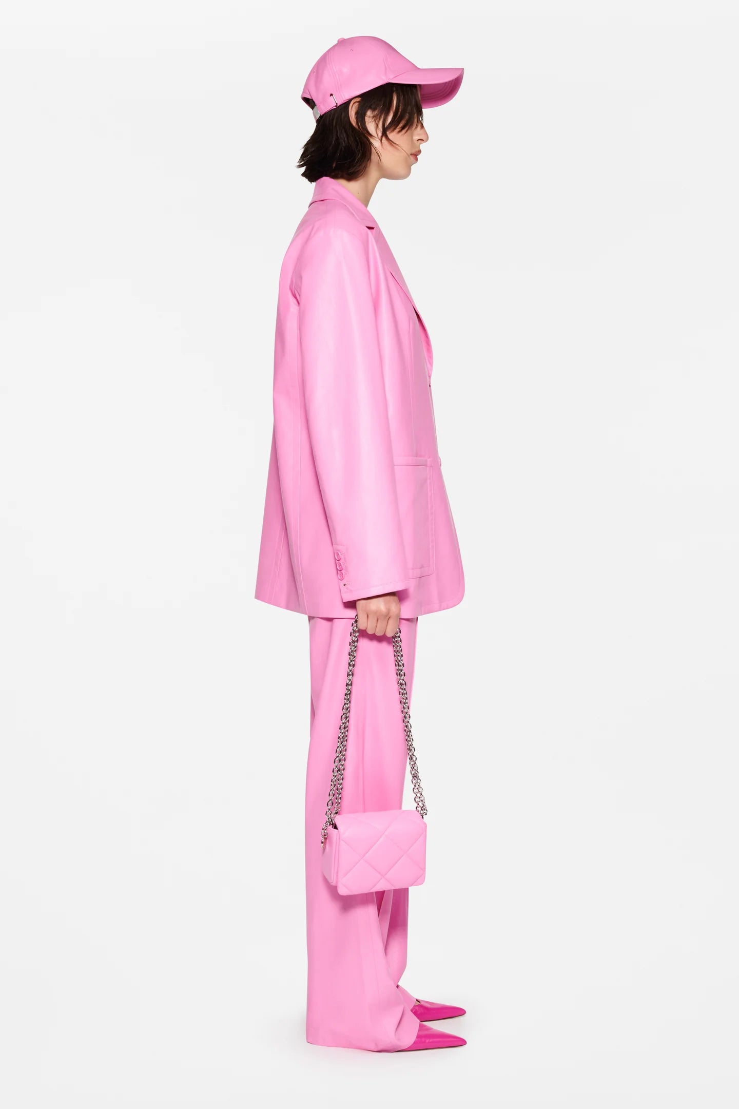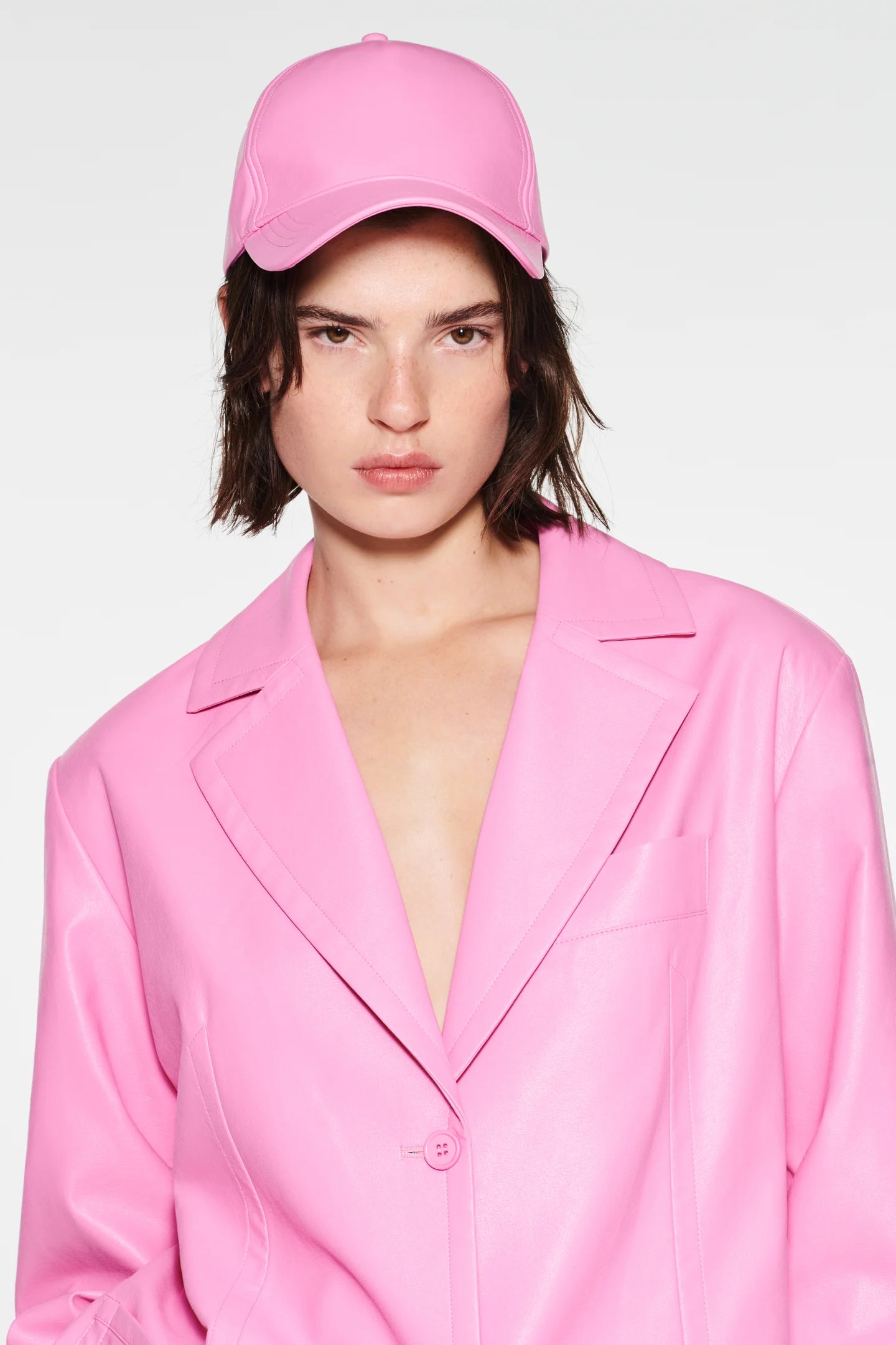 Keeva és una blazer de botonadura senzilla confeccionada amb pell sintètica flexible. Els detalls inclouen butxaques aplicades al davant i coll amb solapa. Destaca pel seu atrevit color rosa.
