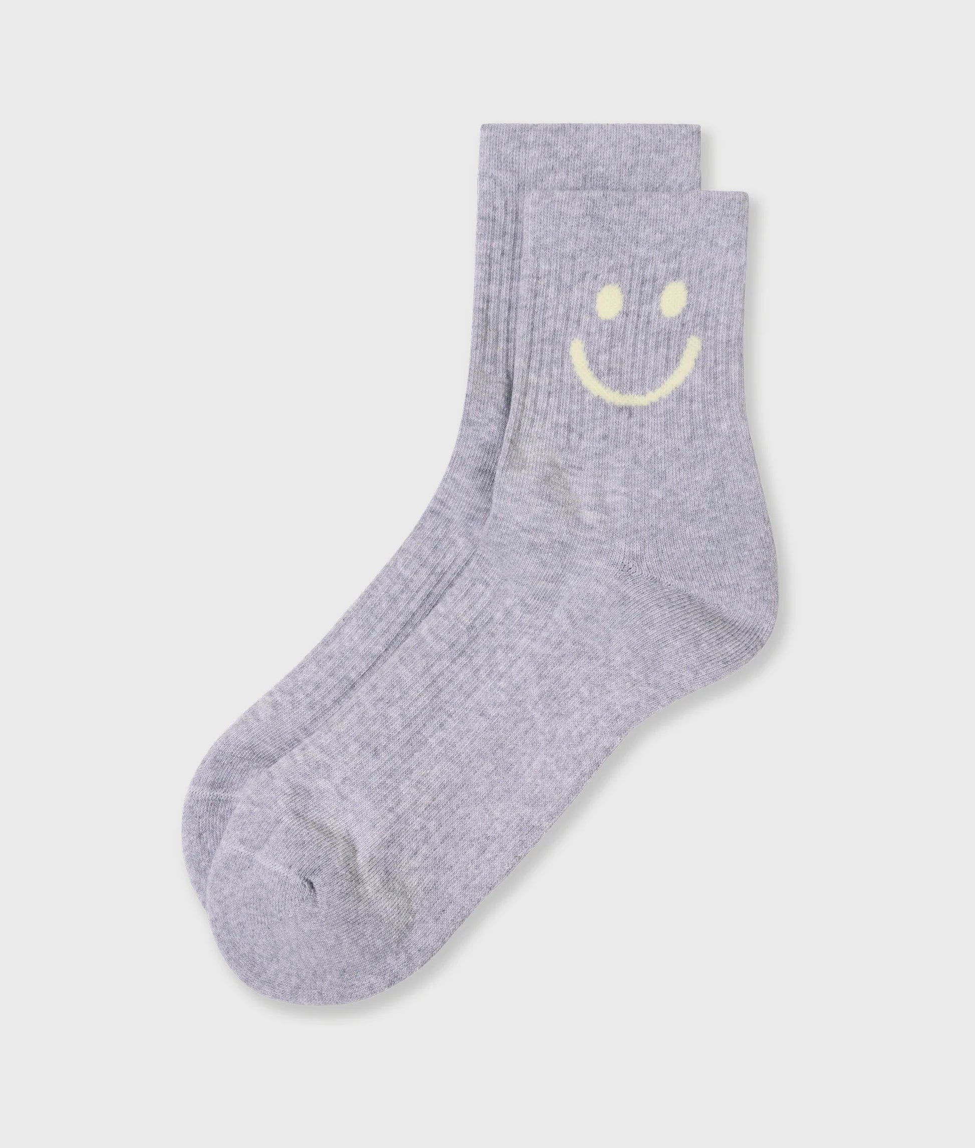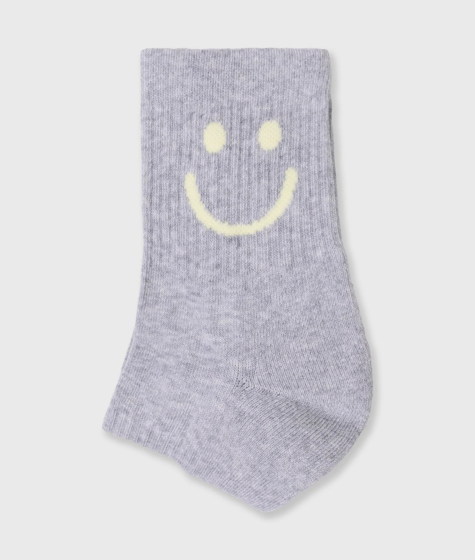 Mitjons de canalé, confeccionats en barreja elàstica de cotó i poliamida. Amb un smiley al lateral i un logotip sota el peu. Dissenyats amb puny de canalé i detalls de lúrex platejat brillant.