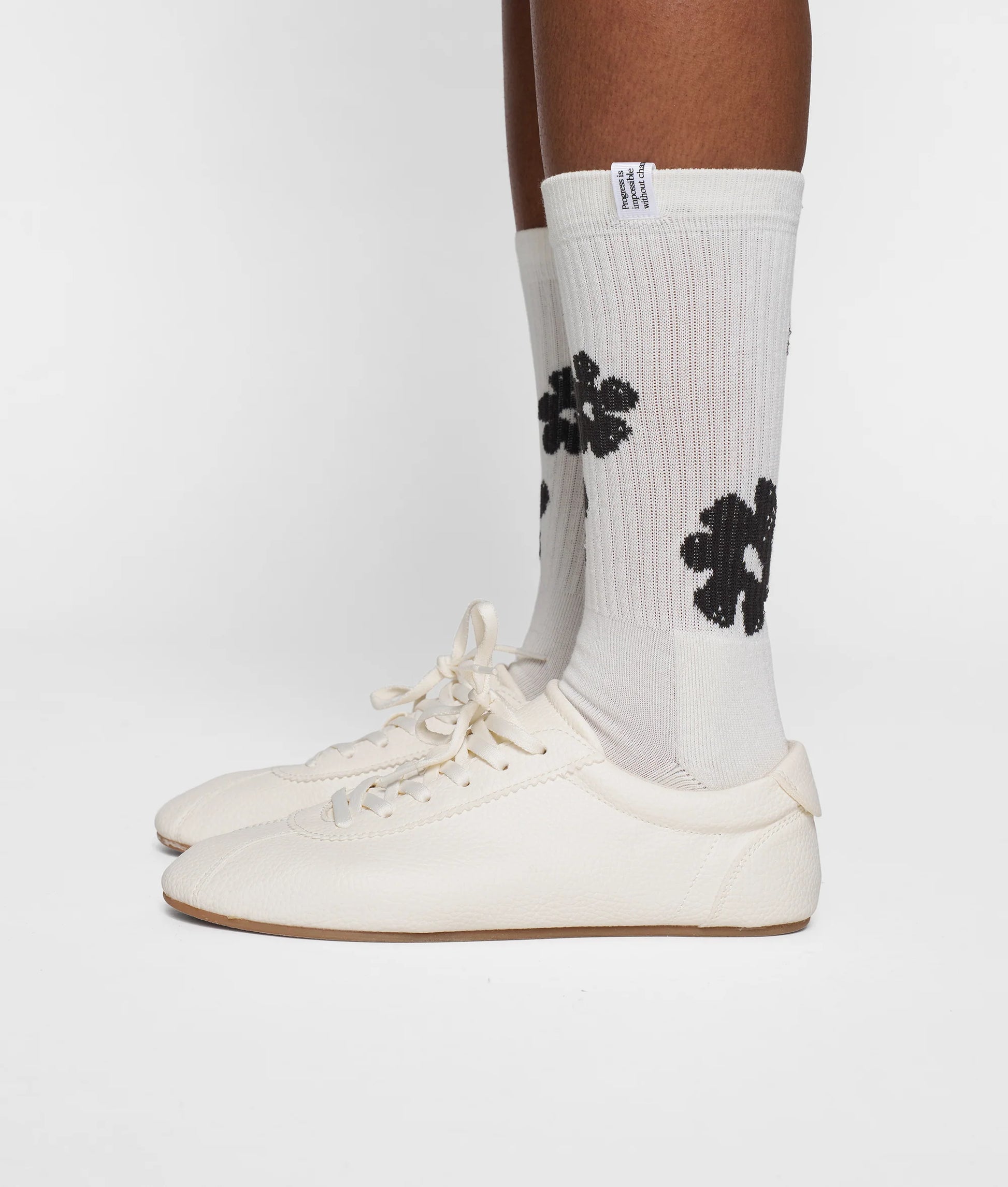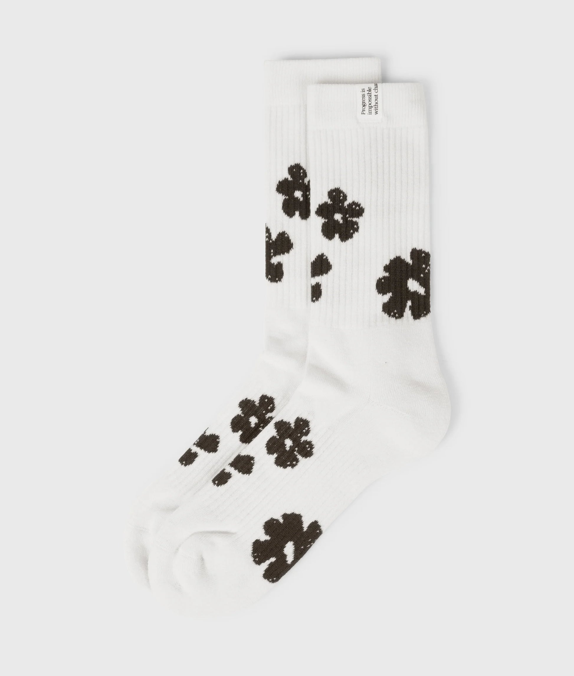 Mitjons alts amb estampat floral, confeccionats en una suau i elàstica barreja de cotó. El mitjó esportiu té una etiqueta al llarg de la vora, una part superior acanalada i un logotip 10DAYS teixit sota el peu.
