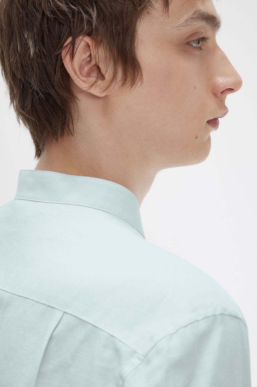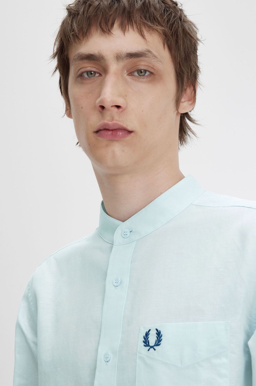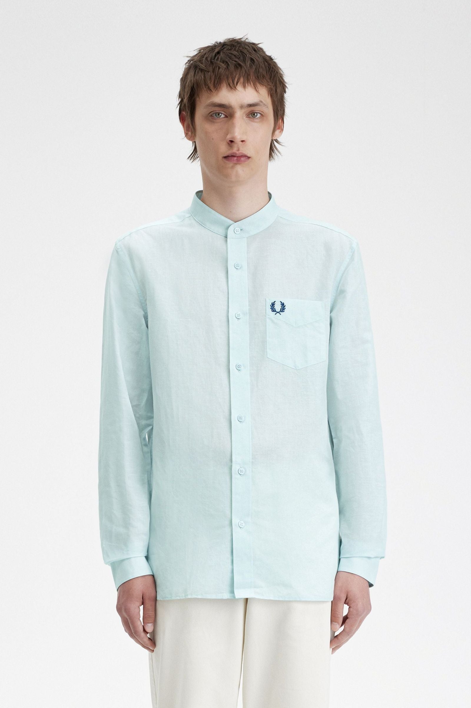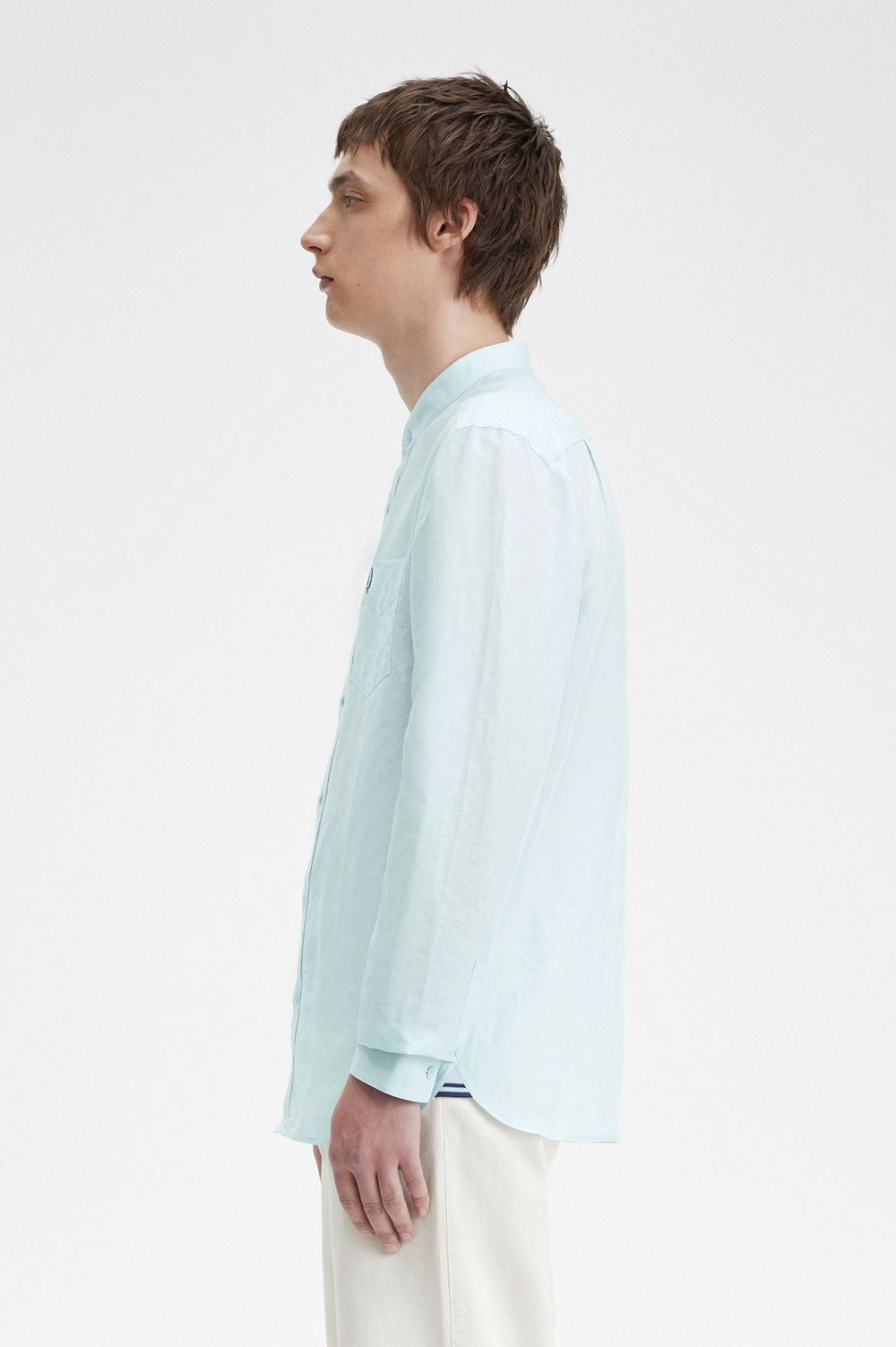 Camisa de coll mao confeccionada en una barreja transpirable i lleugera de lli i cotó, perfecta per a les vacances al sol i les suoses pistes de ball de la teva ciutat natal.