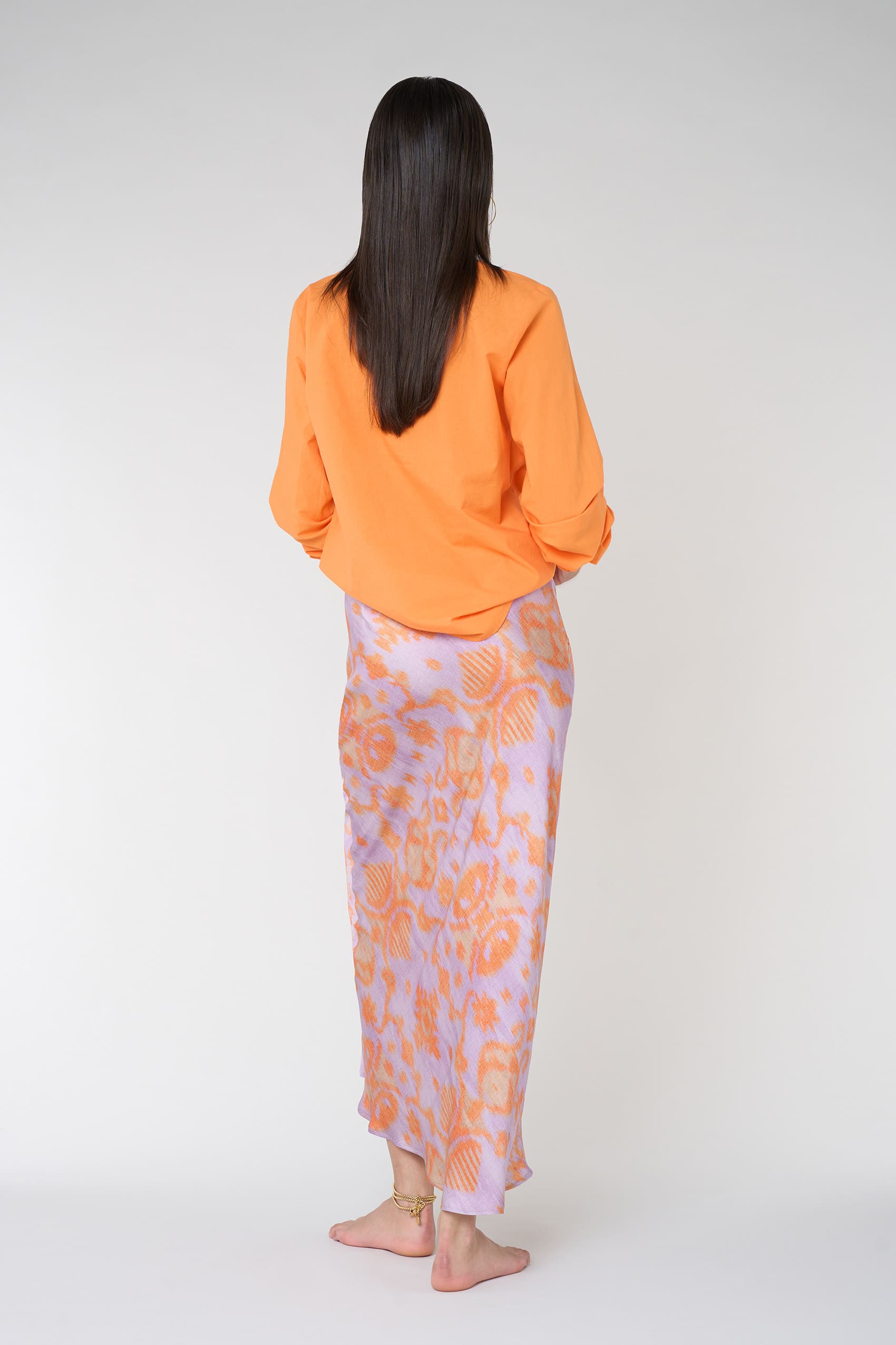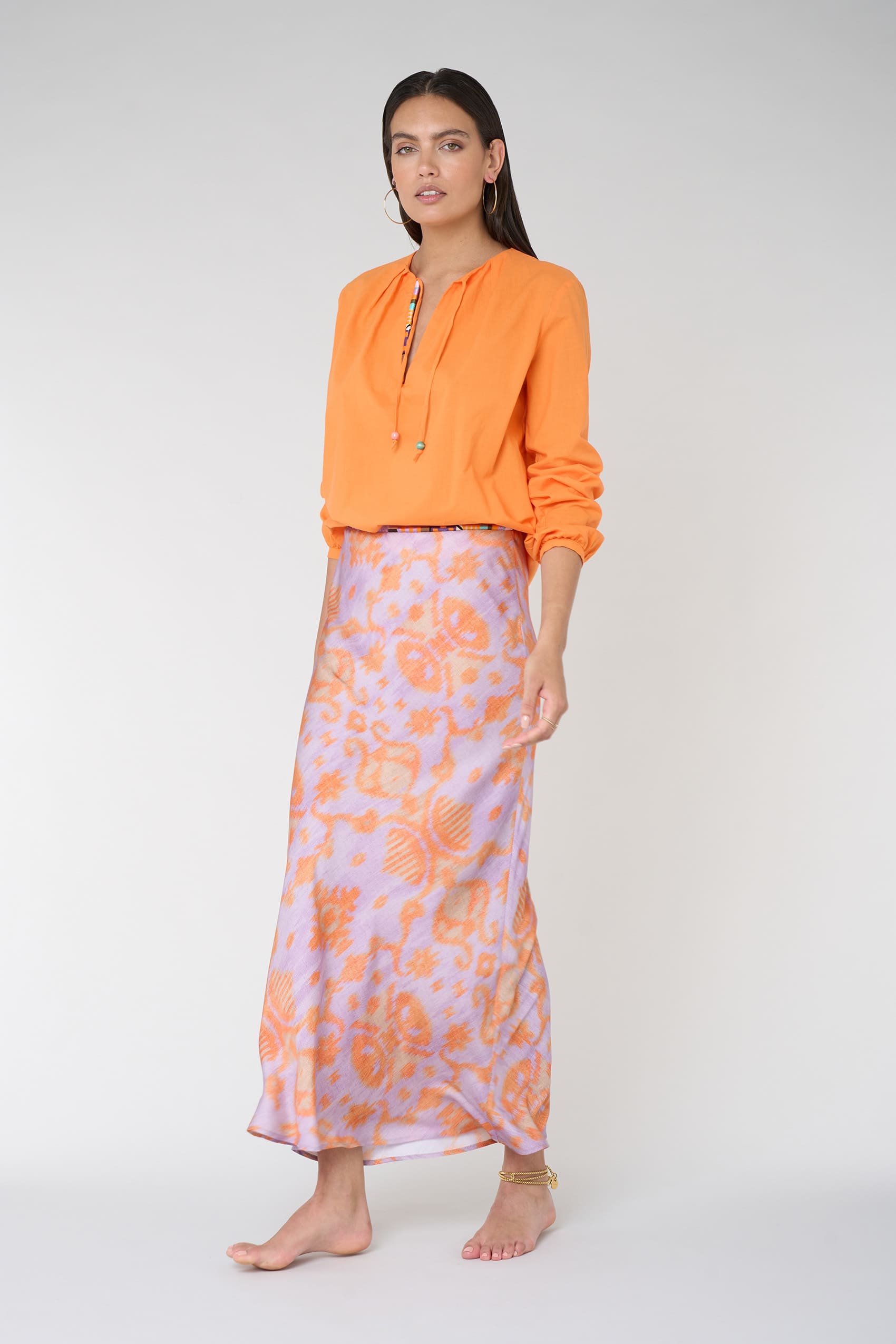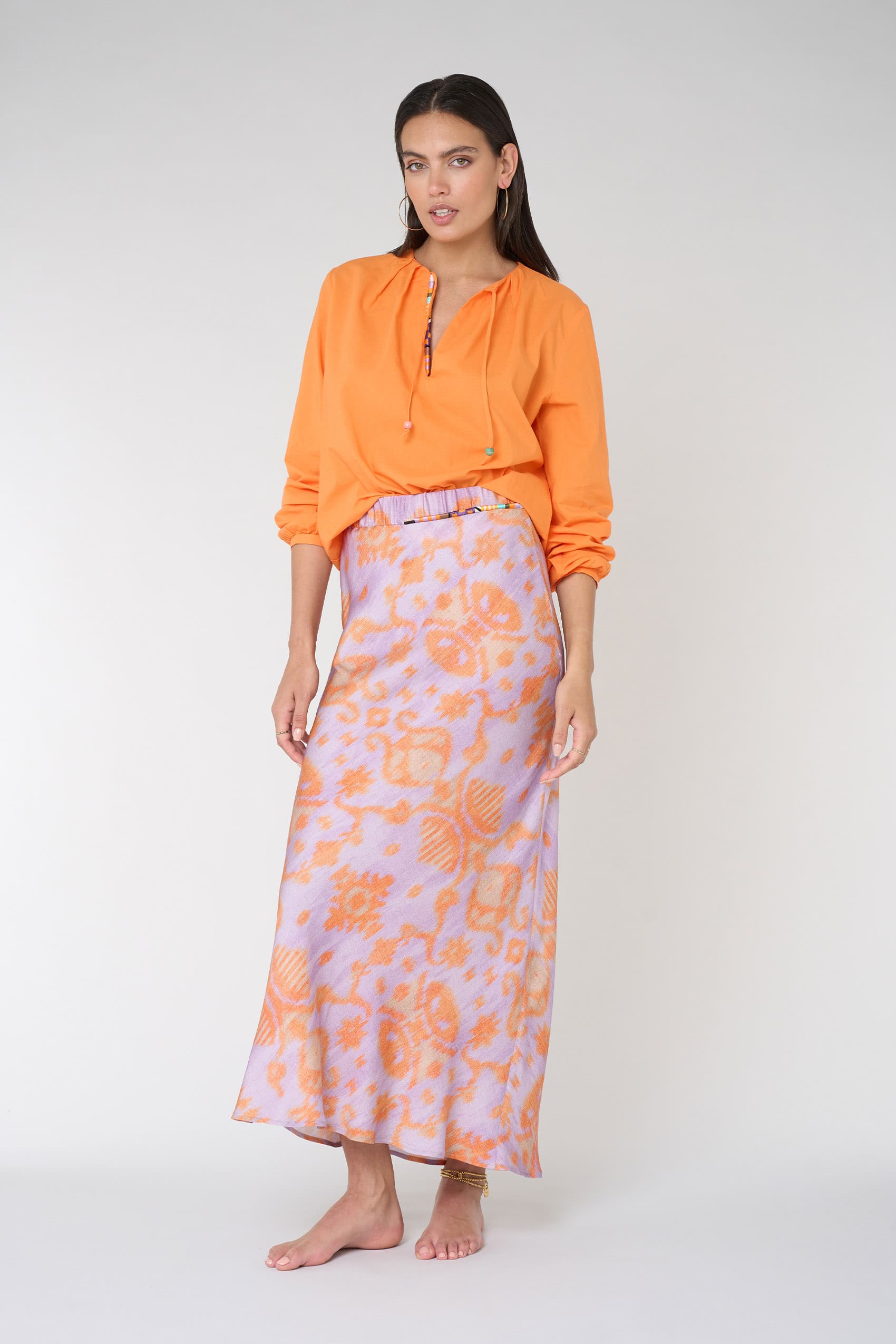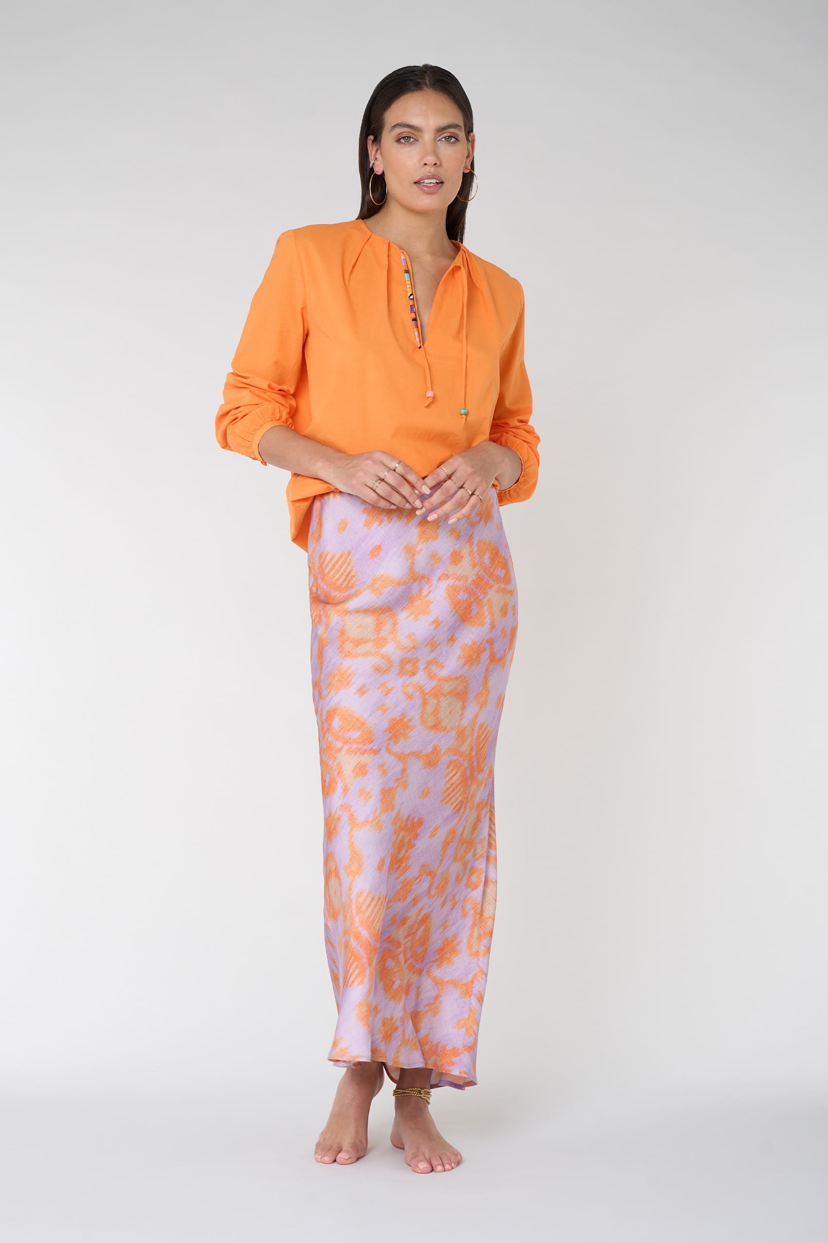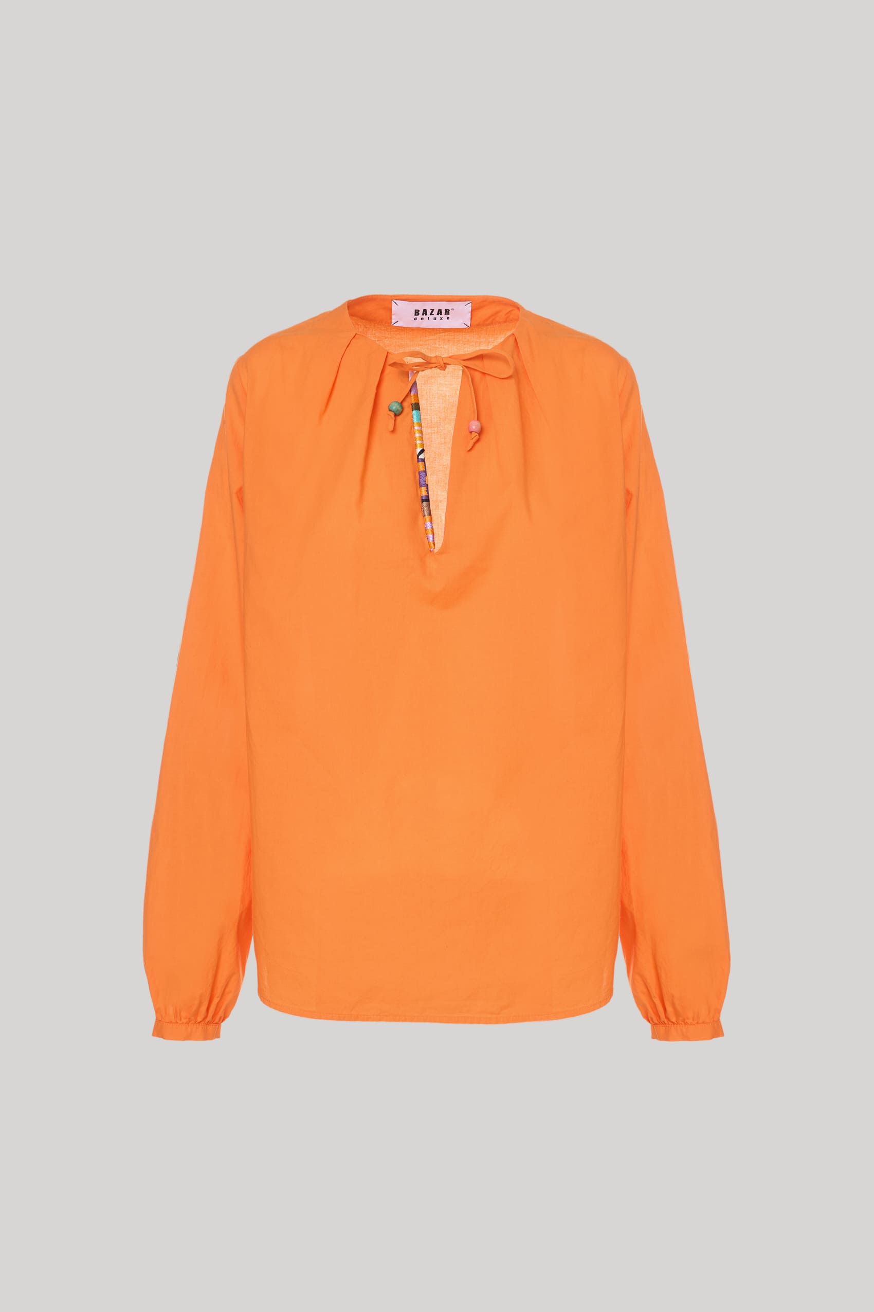 Camisa de color taronja fabricada amb cotó amb detalls ètnics.