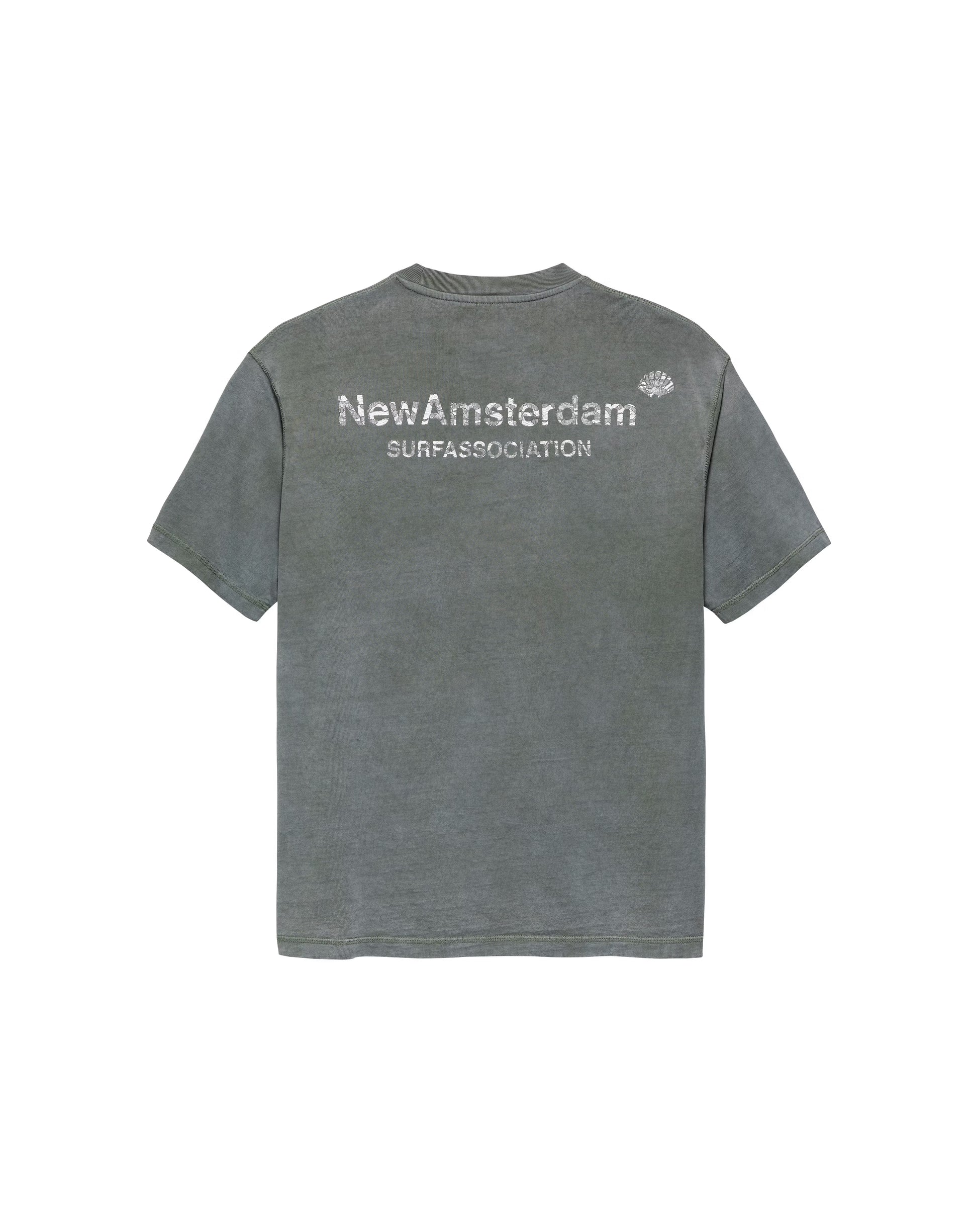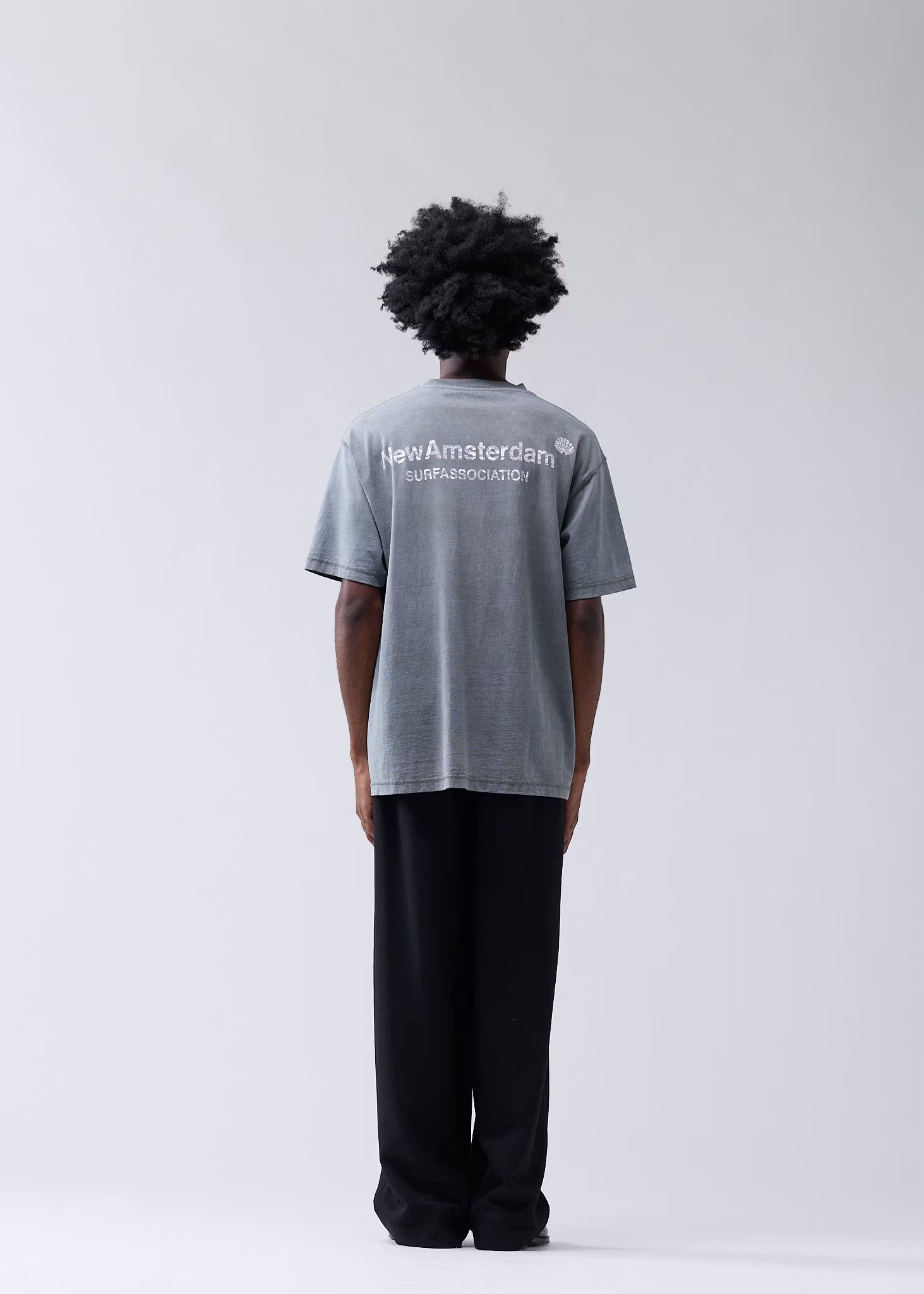 Samarreta de coll rodó amb tall unisex regular. Compta amb estampats del logotip de New Amsterdam a la part davantera i del darrere, amb un efecte de patró d'encaix creat en eliminar l'encaix després de la impressió. Confeccionada amb cotó tenyit en peça de 240 g/m² i tractada amb esprai PP.