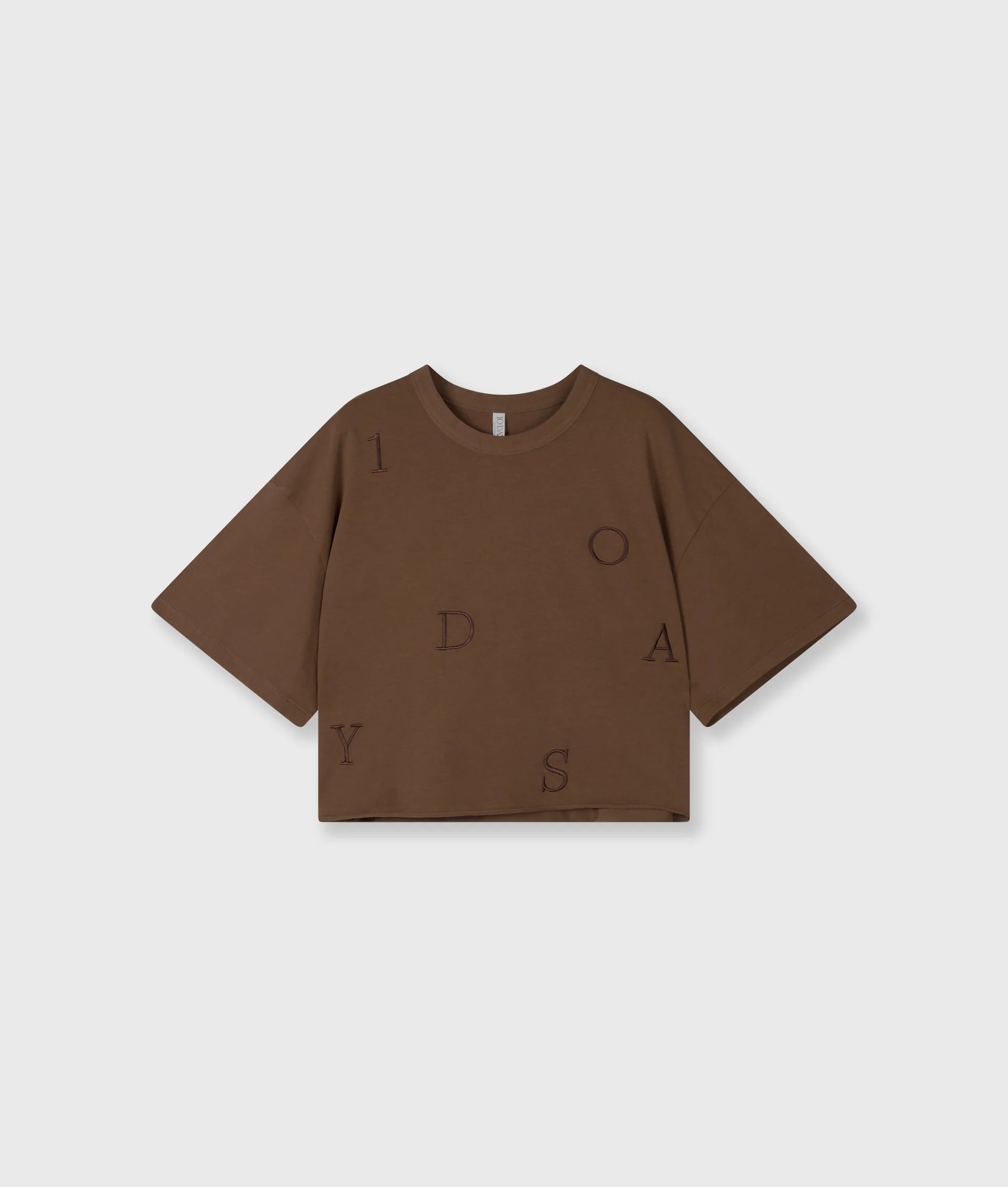 Camiseta de manga corta y corte holgado, confeccionada con algodón orgánico con certificación GOTS. Cuenta con cuello redondo, dobladillo sin rematar y el logotipo 10DAYS estampado en toda la parte delantera.