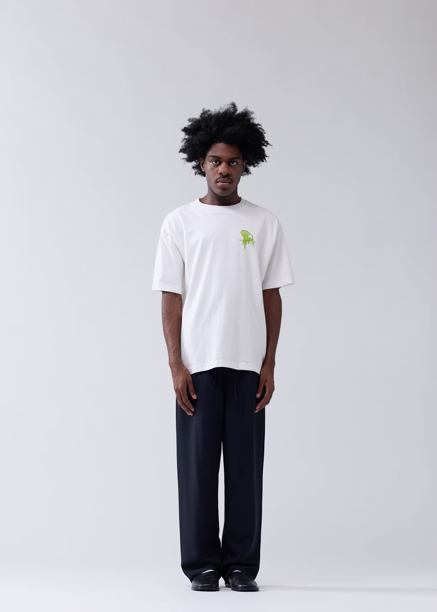 Samarreta de coll rodó, amb tall unisex regular. Detalls amb el disseny de temporada Chair de la marca, serigrafiat a la part davantera i posterior. Confeccionada amb cotó tenyit en peça de 240 g/m².