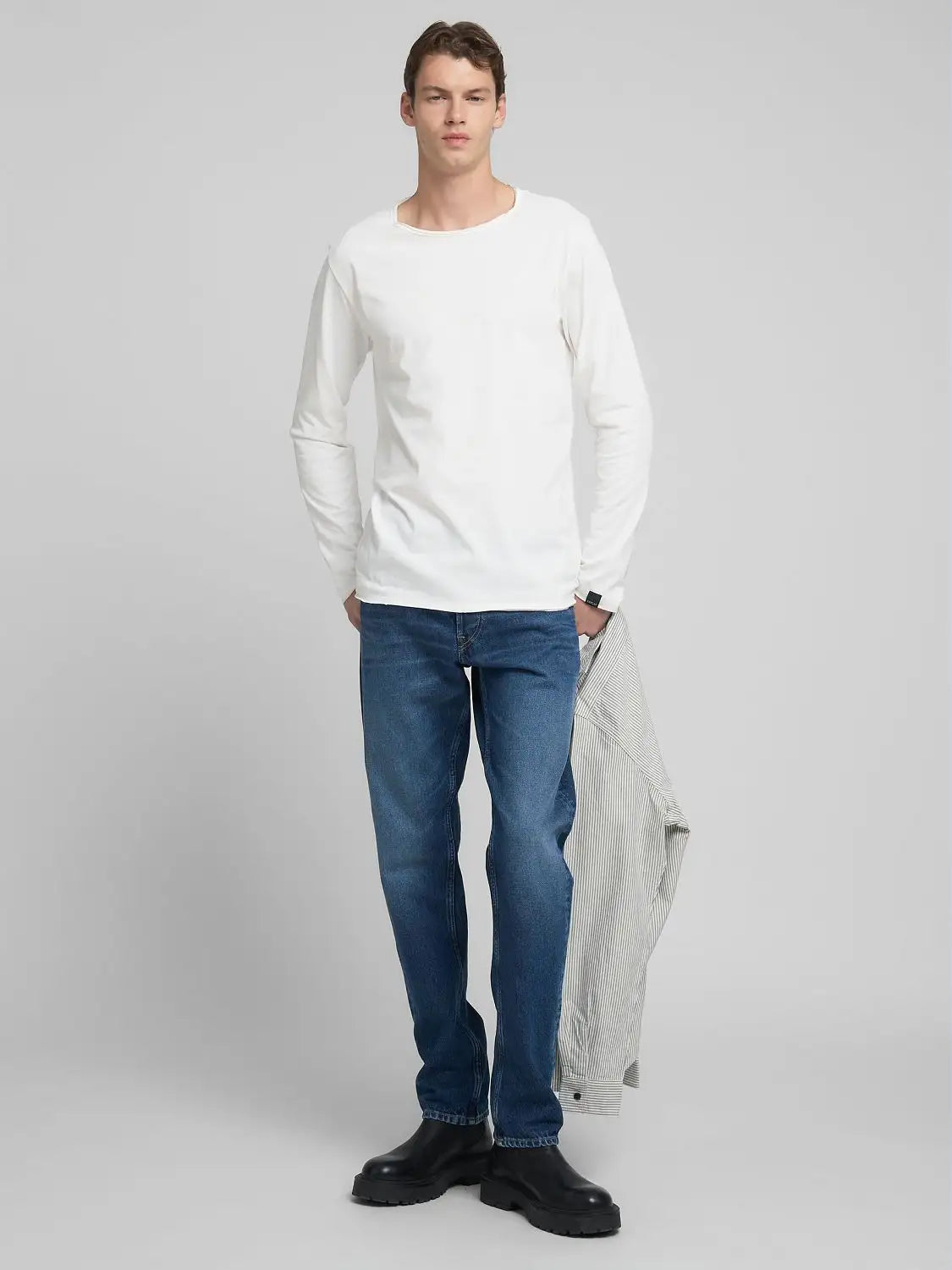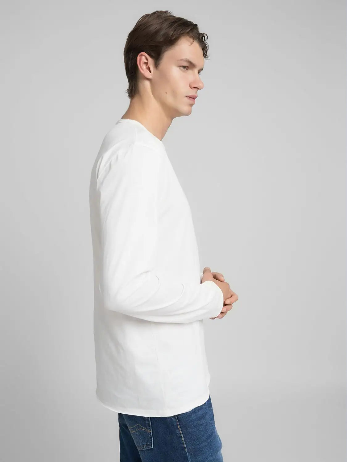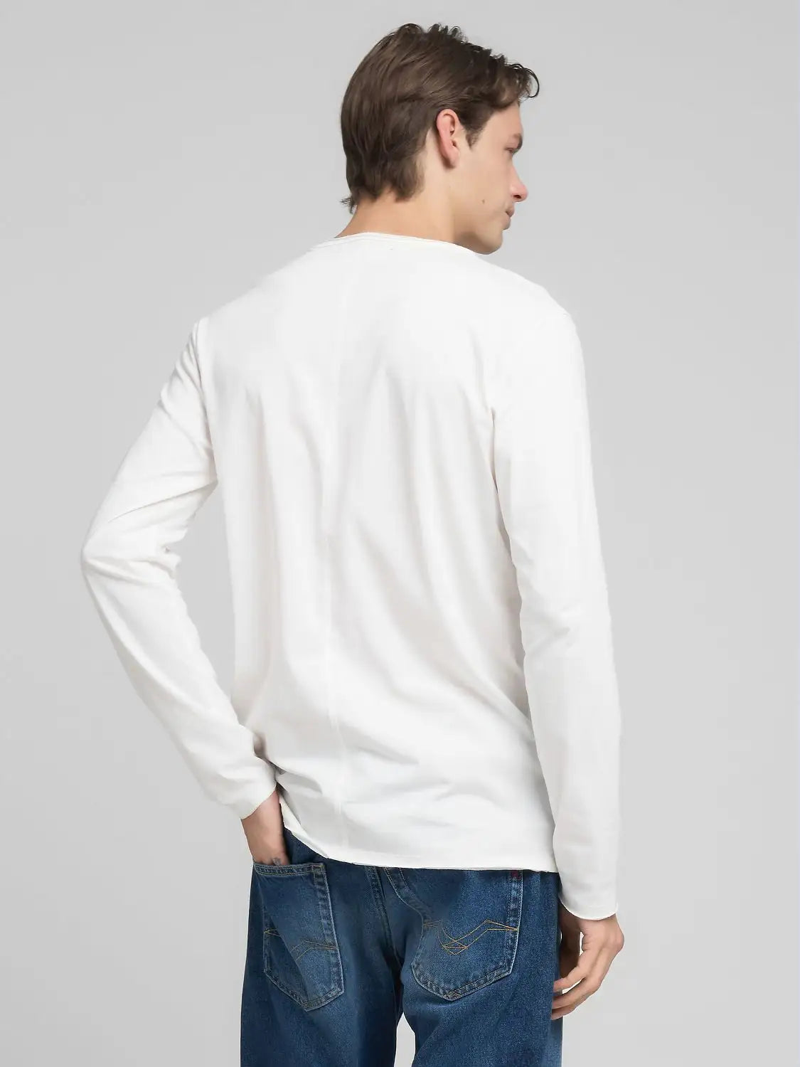 Samarreta de màniga llarga i coll rodó confeccionada en punt de cotó pur, garantia de suavitat i durabilitat. Aquesta samarreta d'home de tall regular presenta un acabat sense rematar al coll, als punys i al baix. L'etiqueta exterior amb el logotip a la part inferior de la màniga, una expressió de l'ADN de Replay, completa la peça.