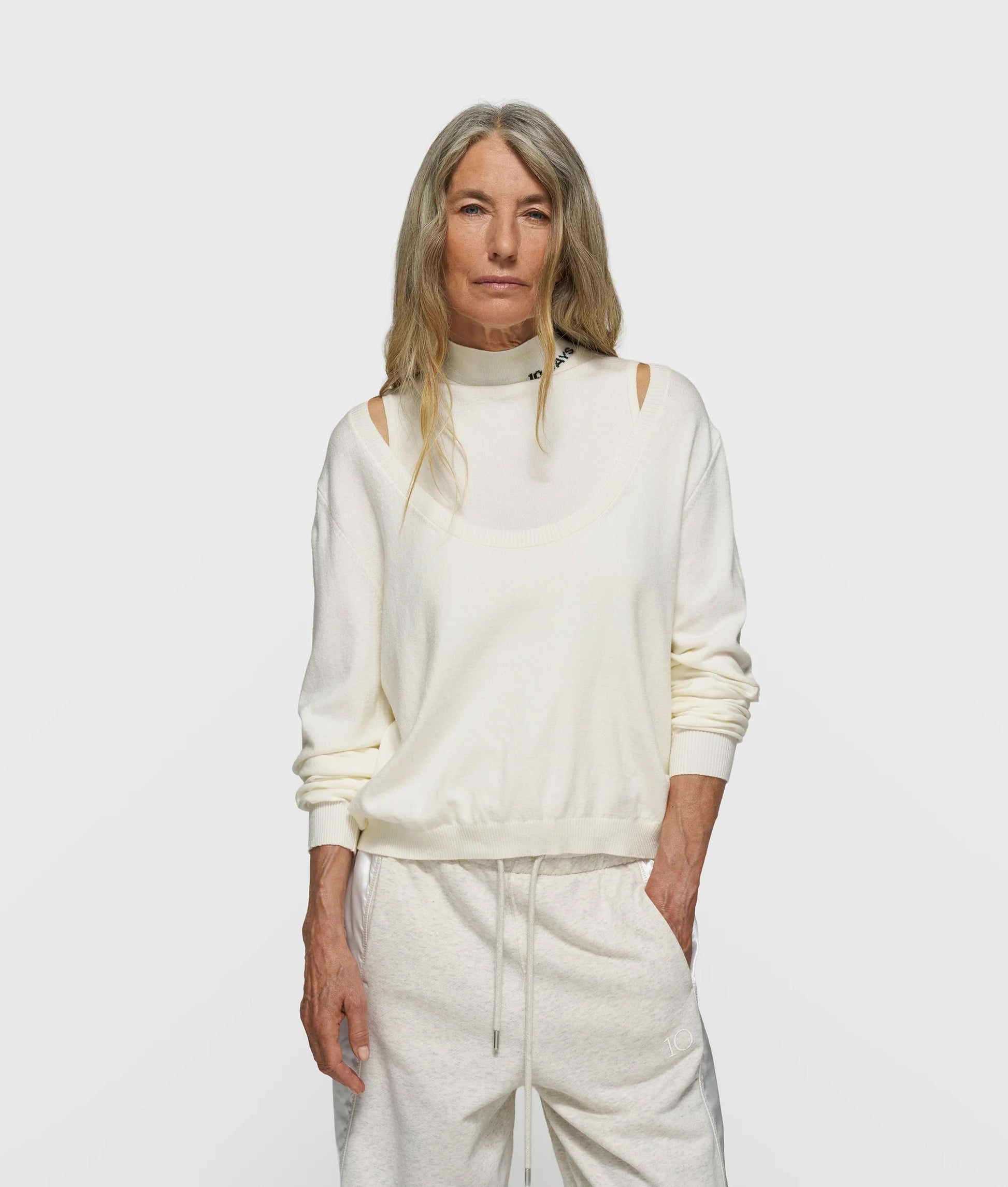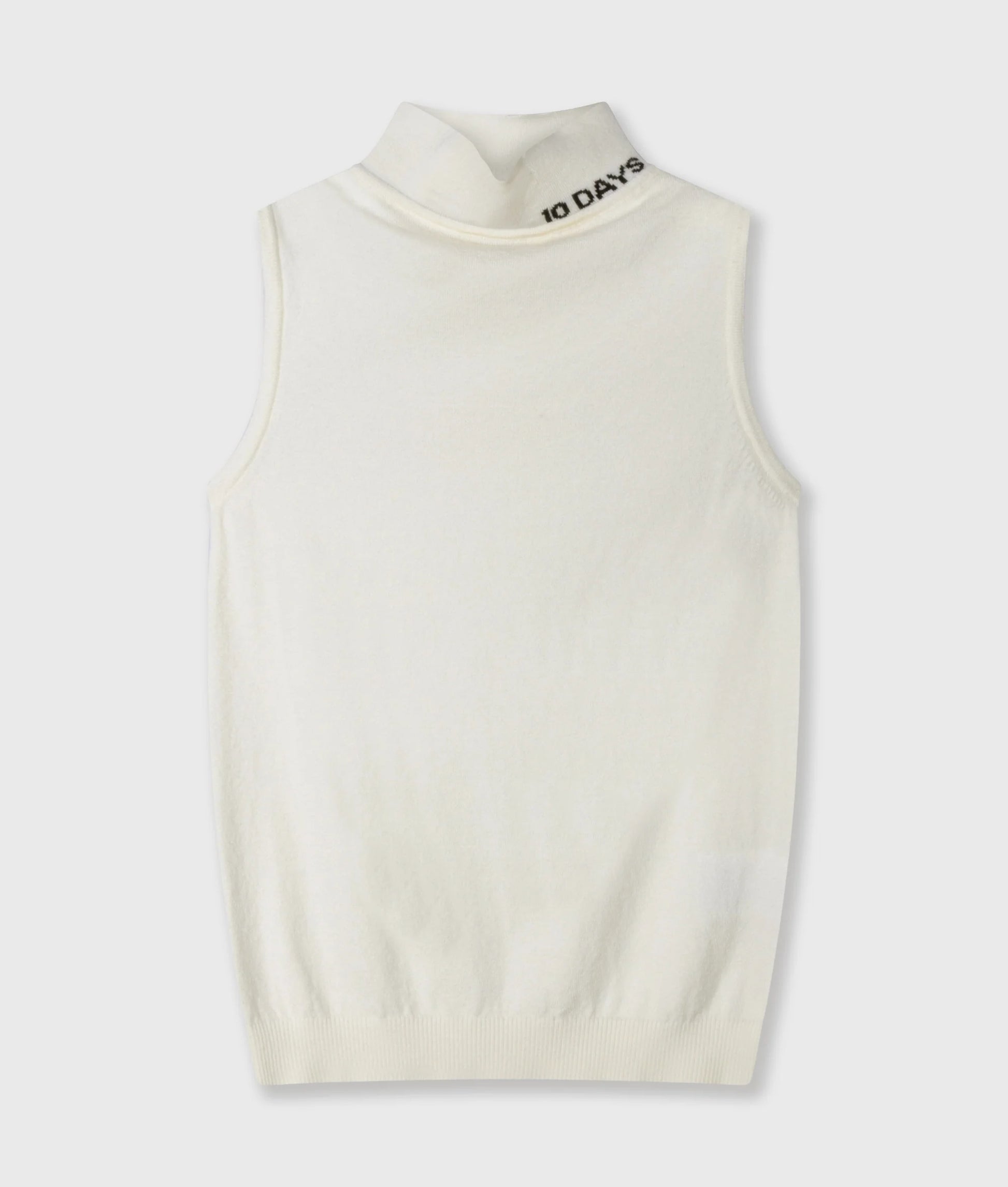 Camiseta interior ajustada de punto, confeccionada en una suave mezcla de viscosa y poliéster. Cuenta con cuello alto, ribetes acanalados y el logotipo «10DAYS» en el cuello.