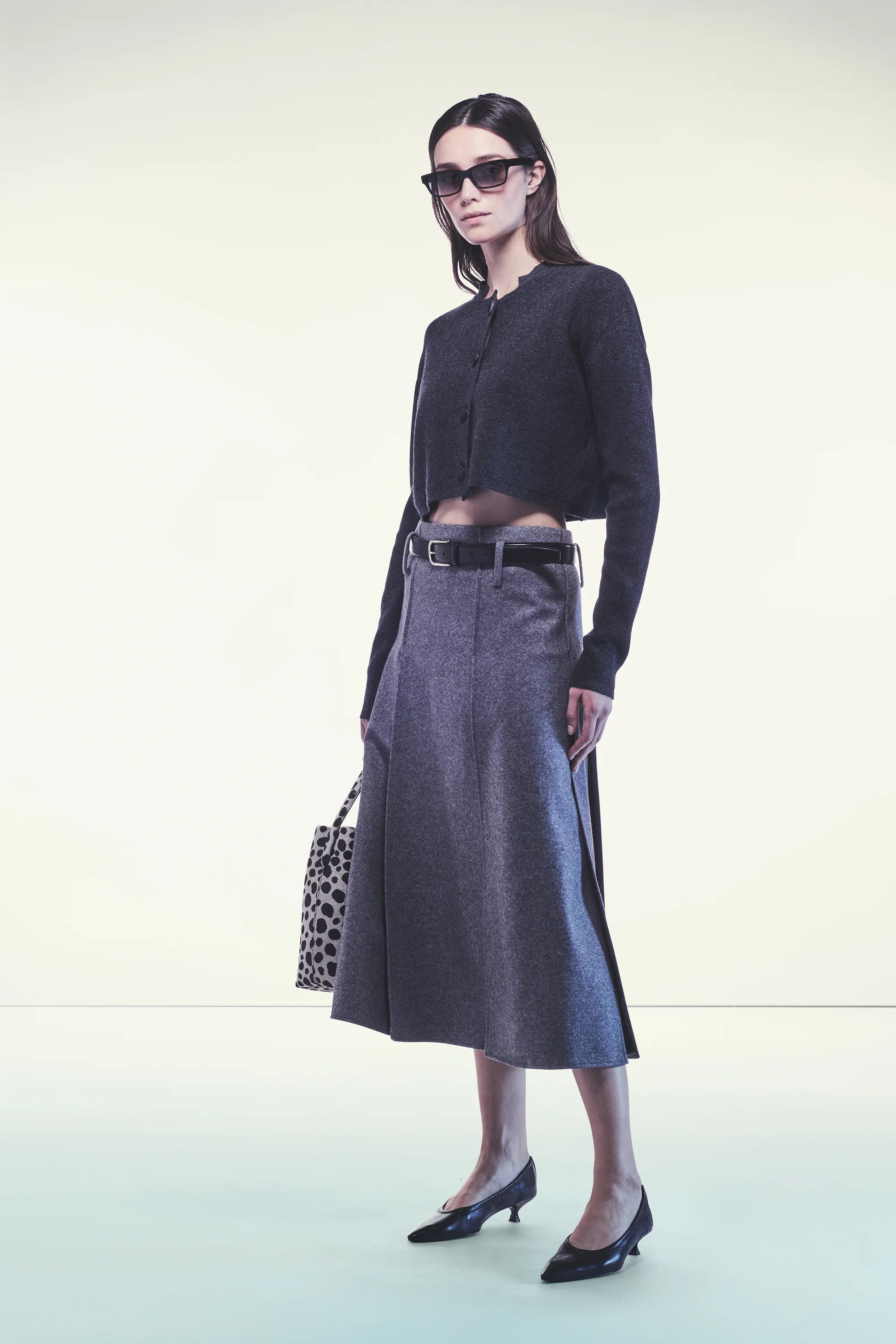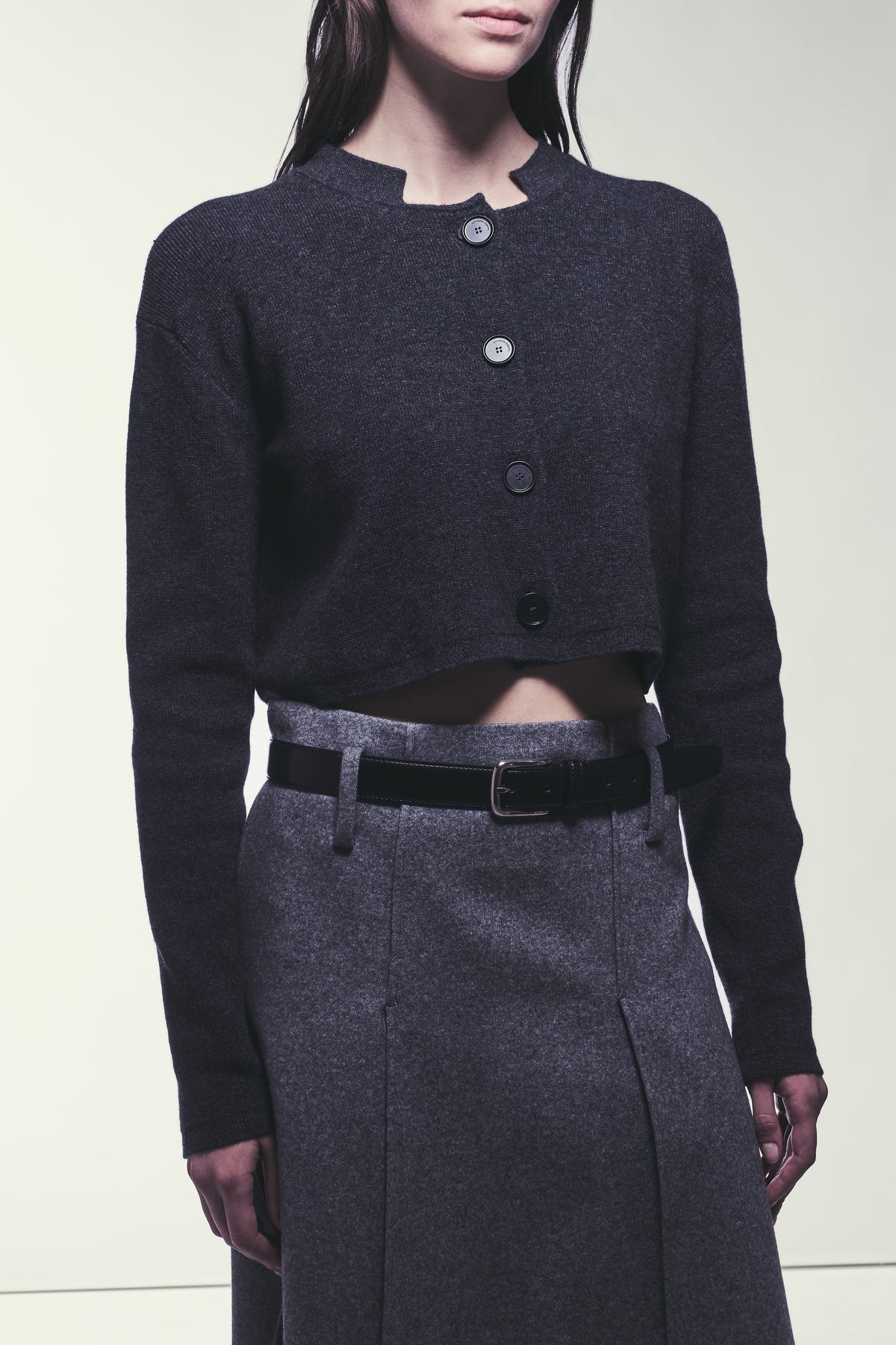 Càrdigan retallat de caixmir reciclat amb coll alt.