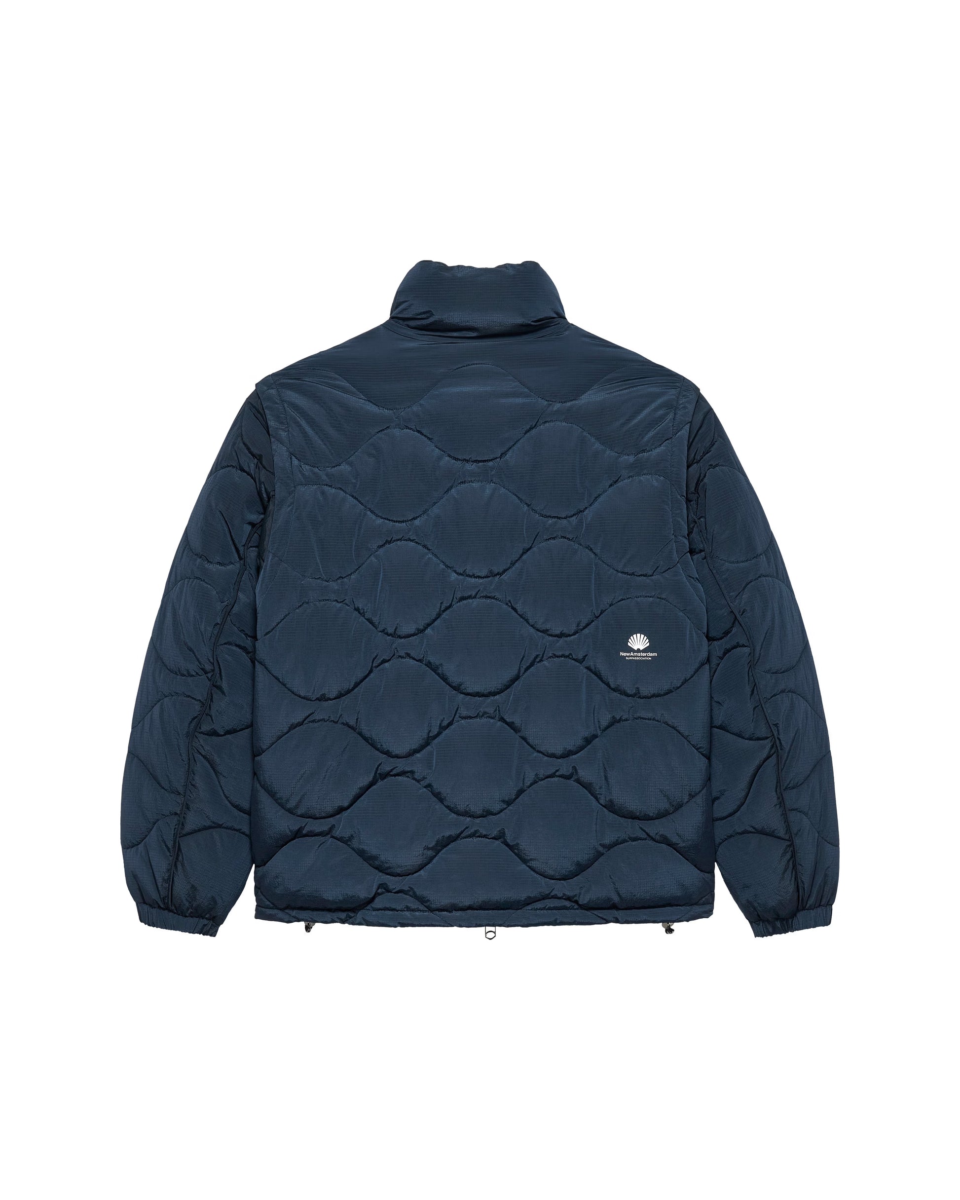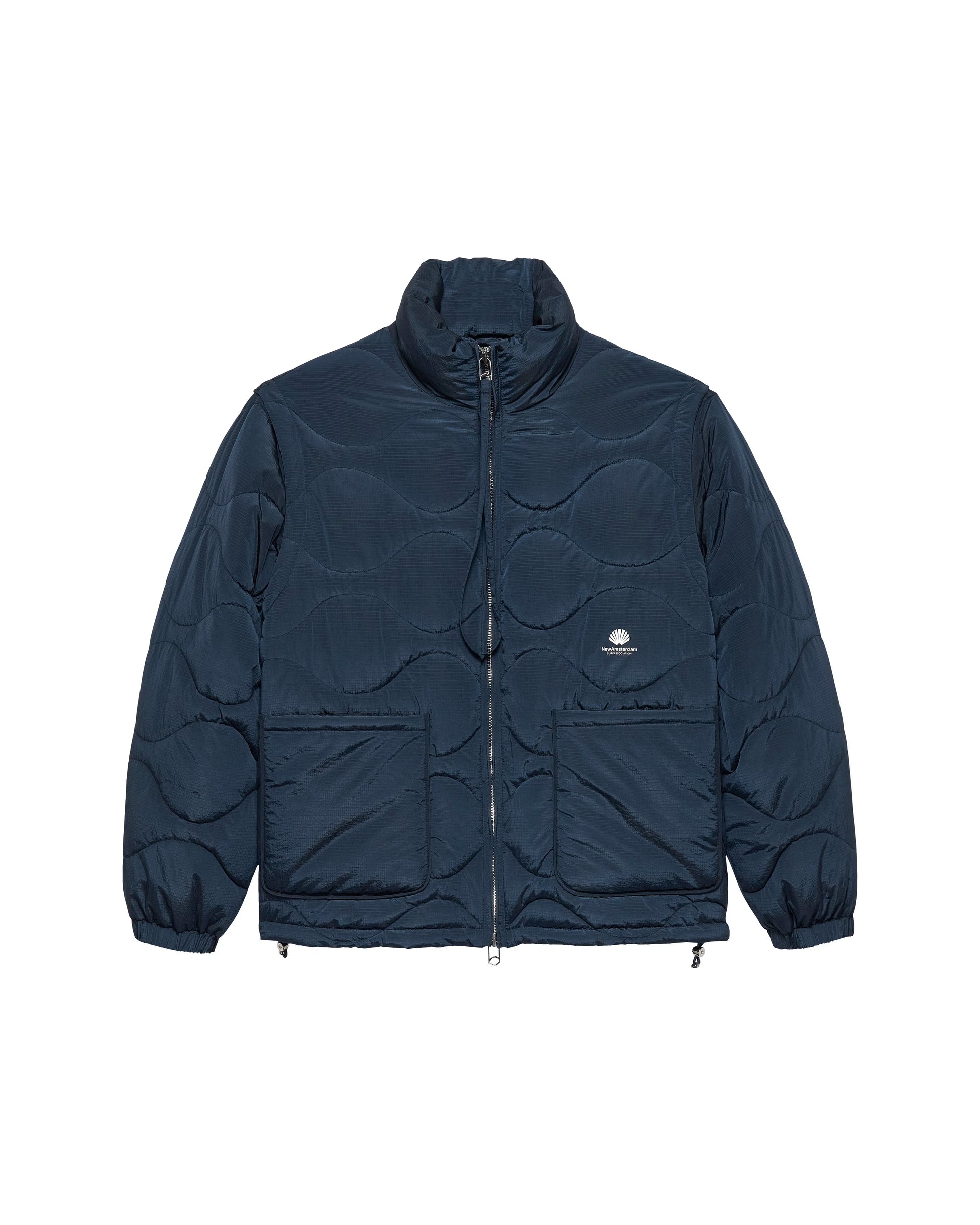 Aquesta jaqueta està confeccionada amb niló ripstop brillant. Compte amb butxaques davanteres amb pegat i doble cremallera metàl·lica, i un clàssic encoixinat tipus ceba. La part davantera i del darrere de la jaqueta porten el logotip de la marca imprès en serigrafia blanca.