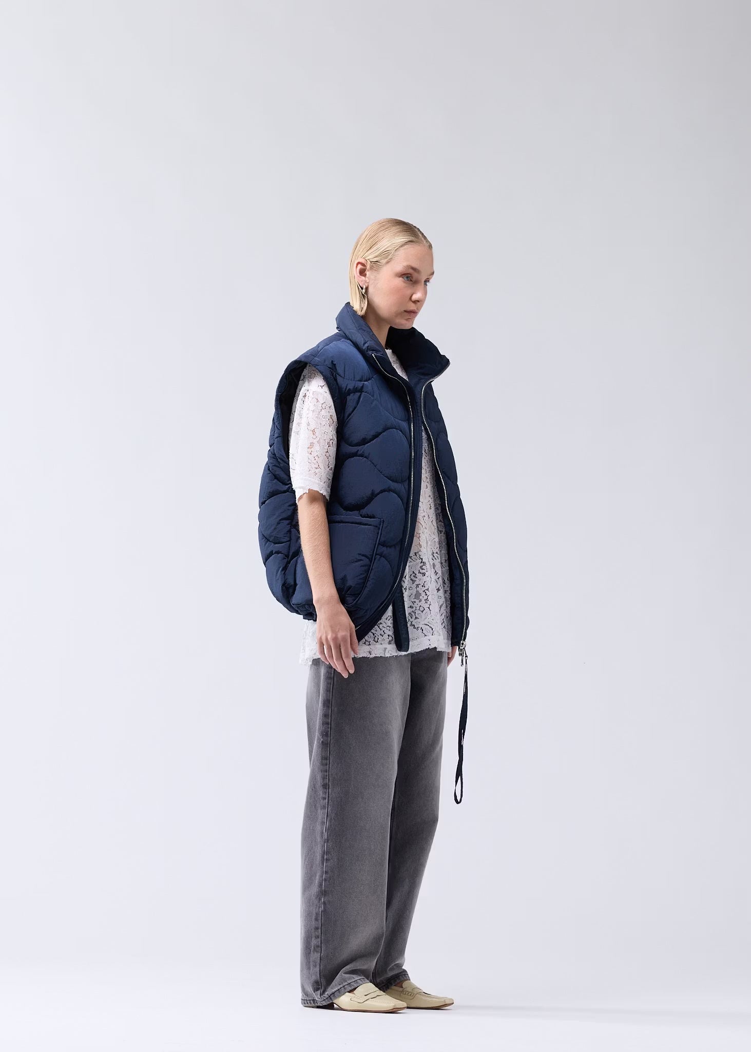 La vora inferior té un cordó elàstic amb topalls amb el logotip de la marca. La jaqueta té un tall unisex regular amb silueta encoixinada.