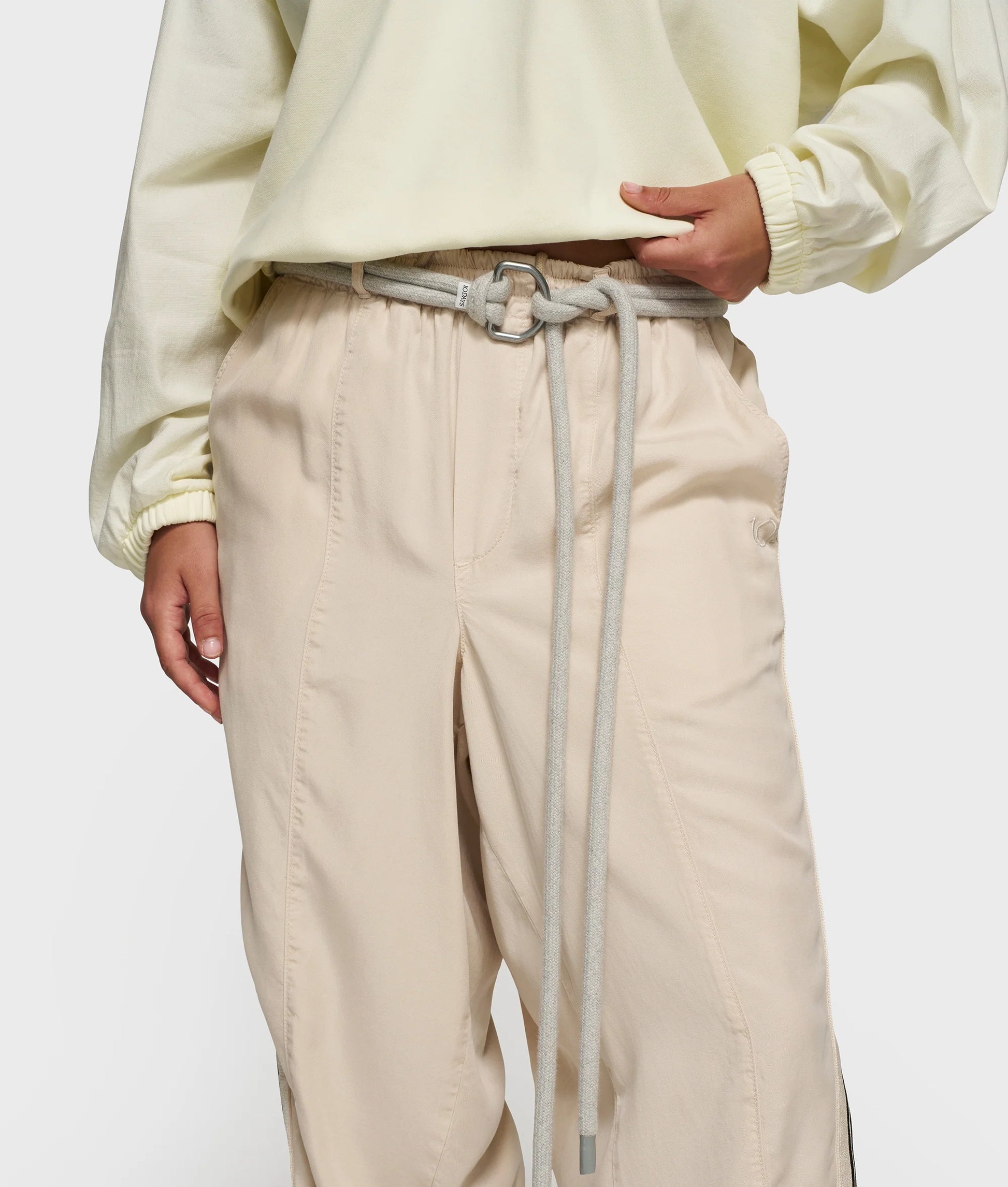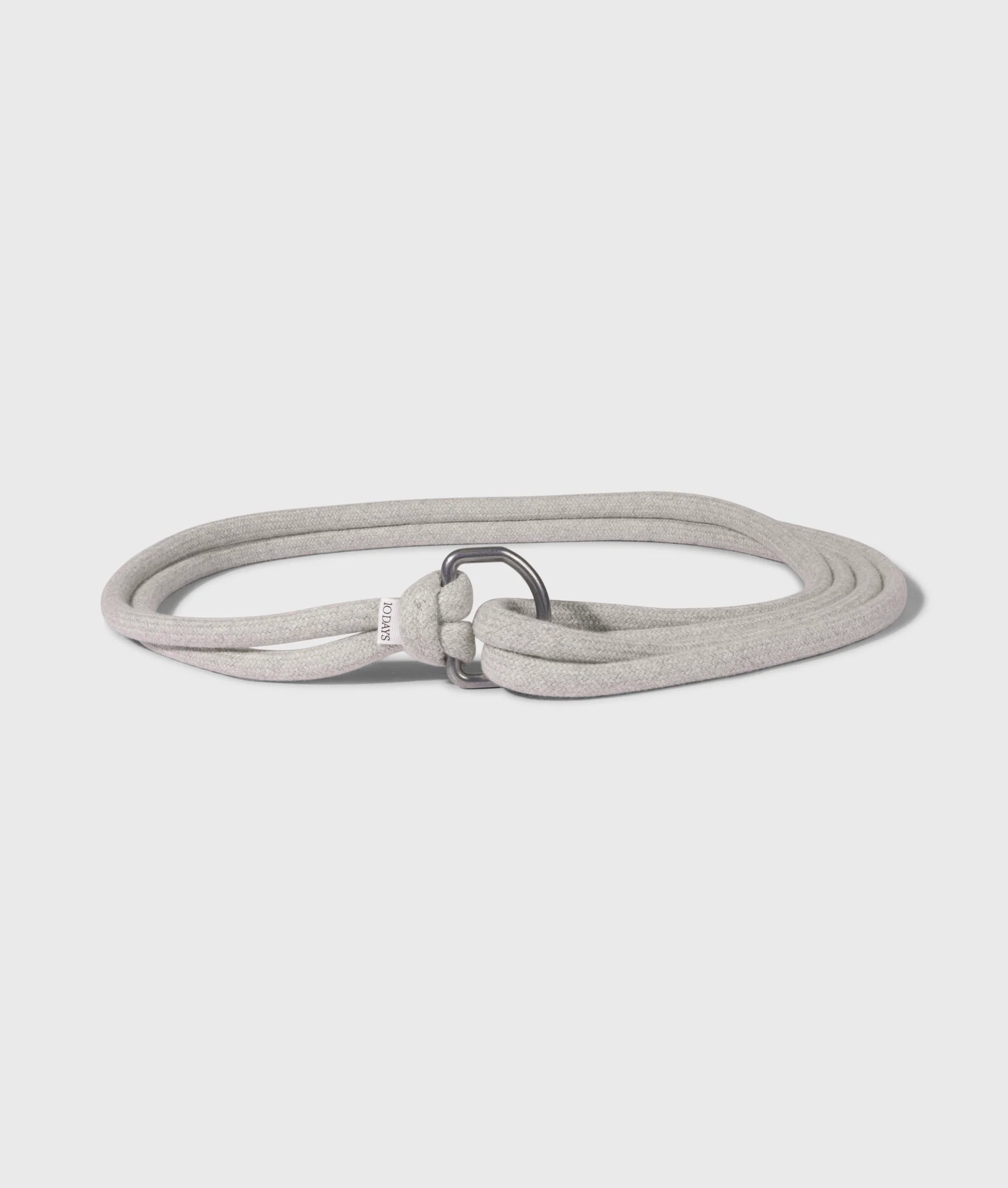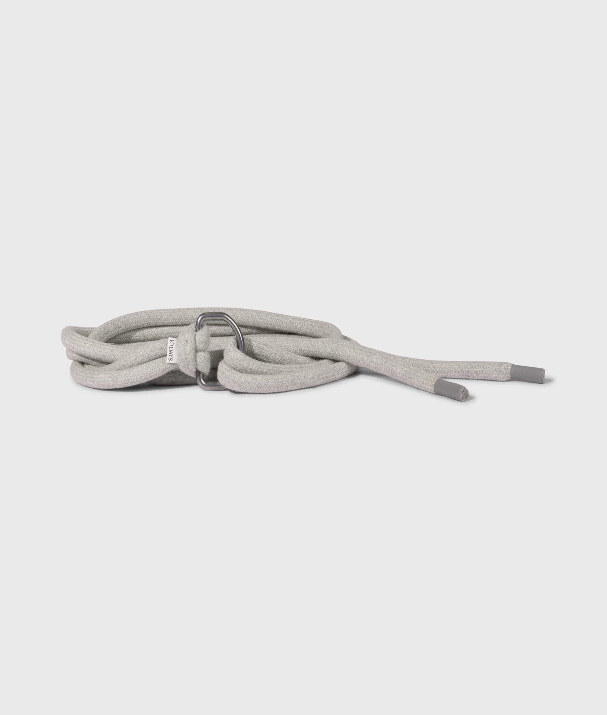 Cinturó ajustable de cordó de cotó amb anella metàl·lica en forma de D. Amb extrems nuats amb acabat de goma i detall d'etiqueta. Longitud: 140 cm.