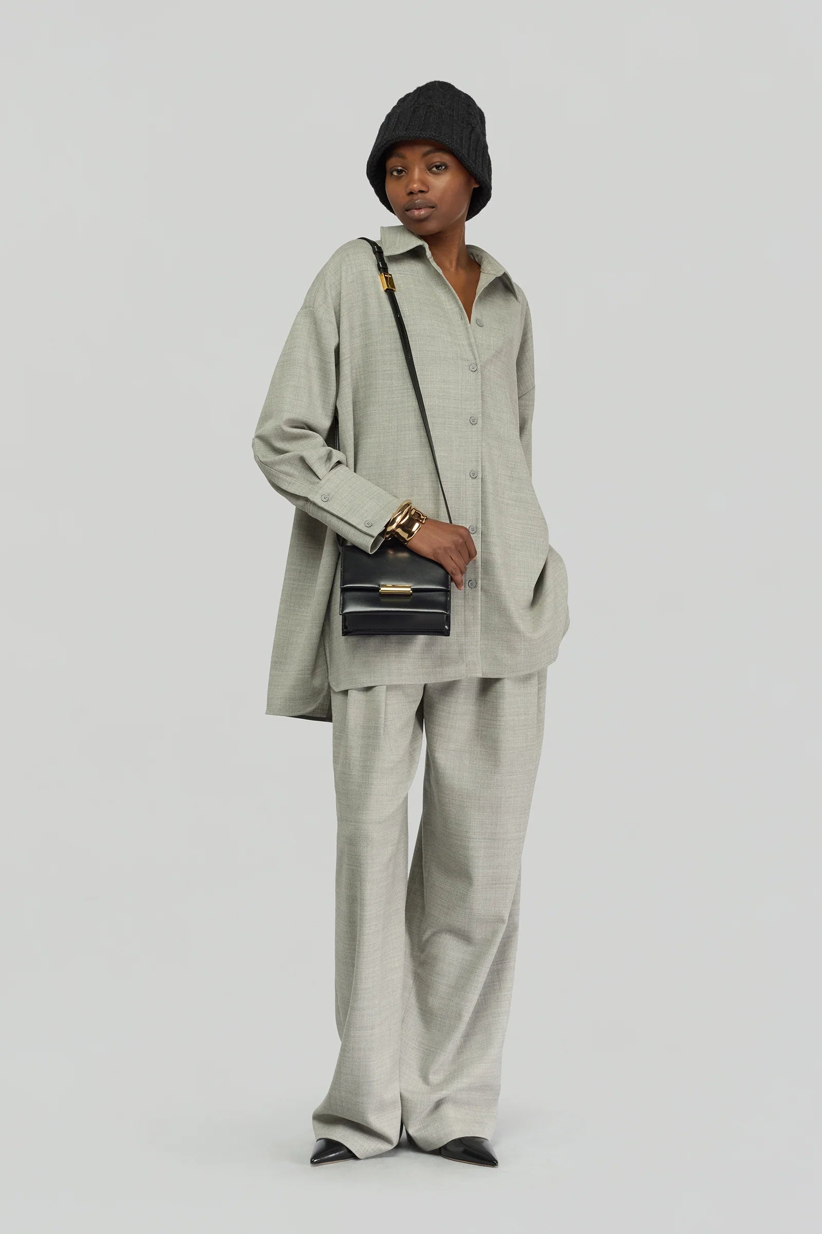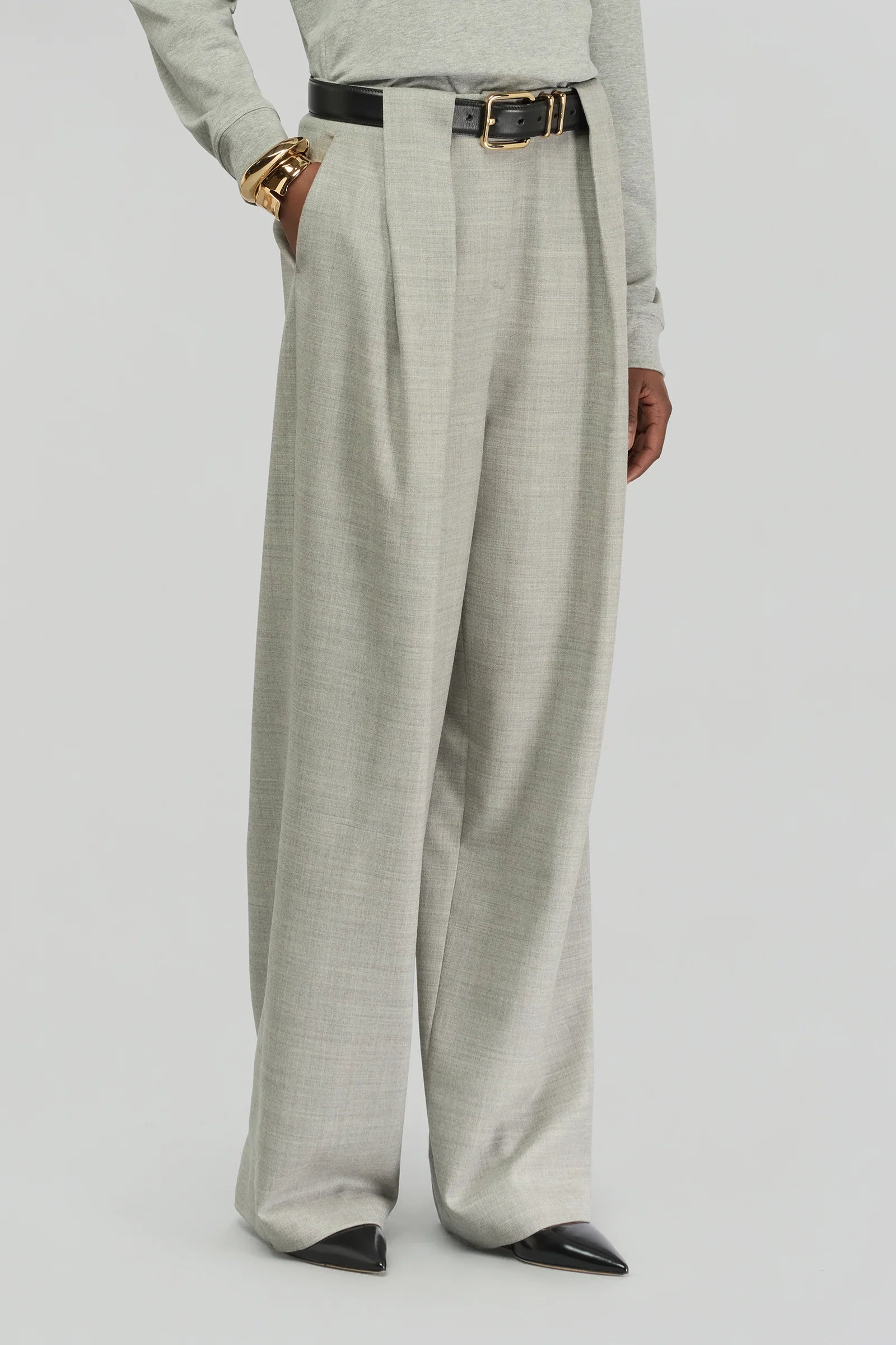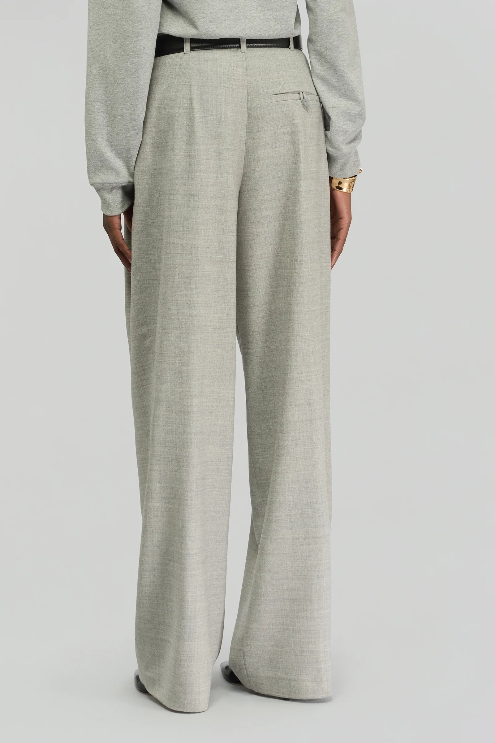 Pantalons de franel·la. Detall de plecs a la part davantera. Tancament amb claudàtor i cremallera. Tall recte.