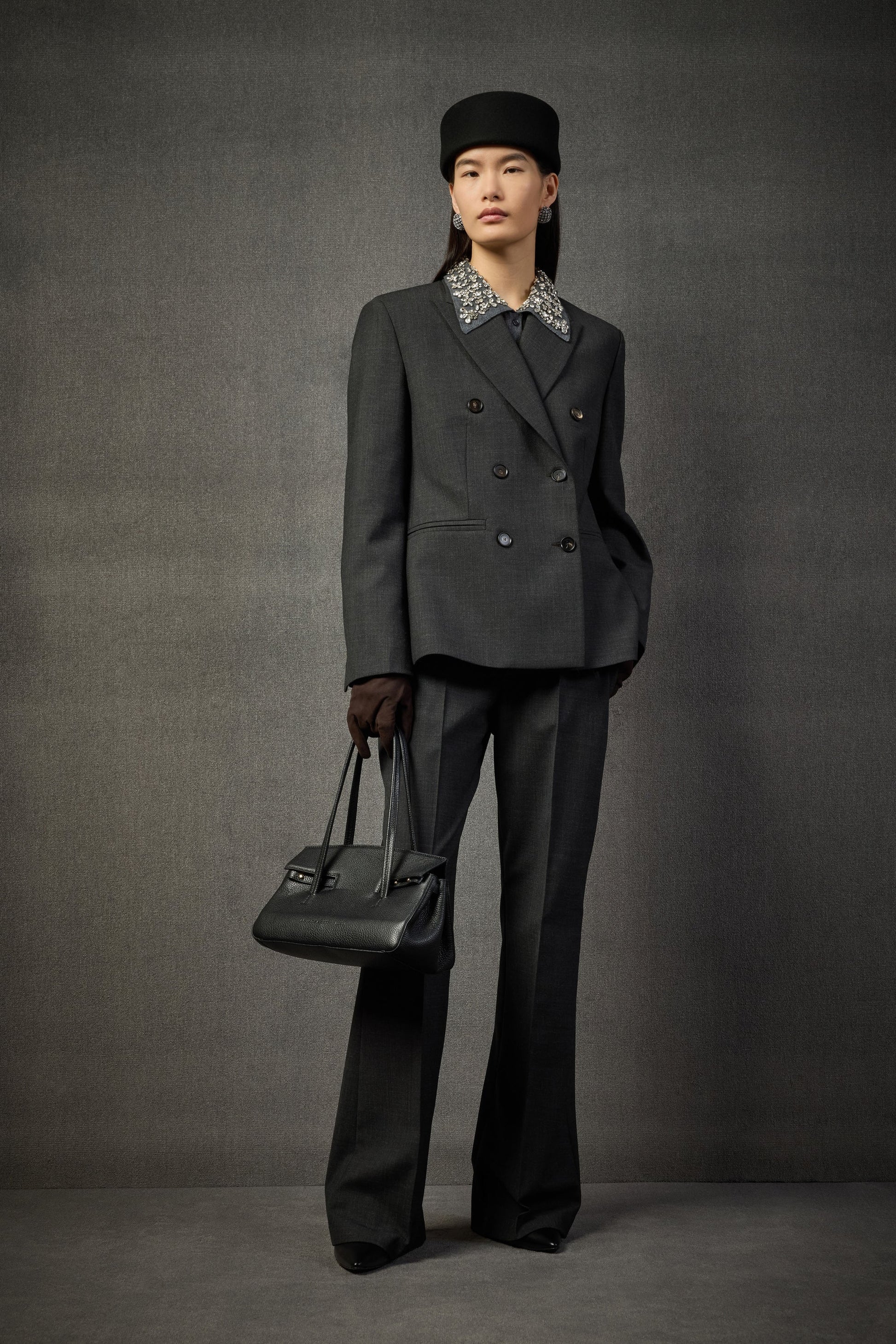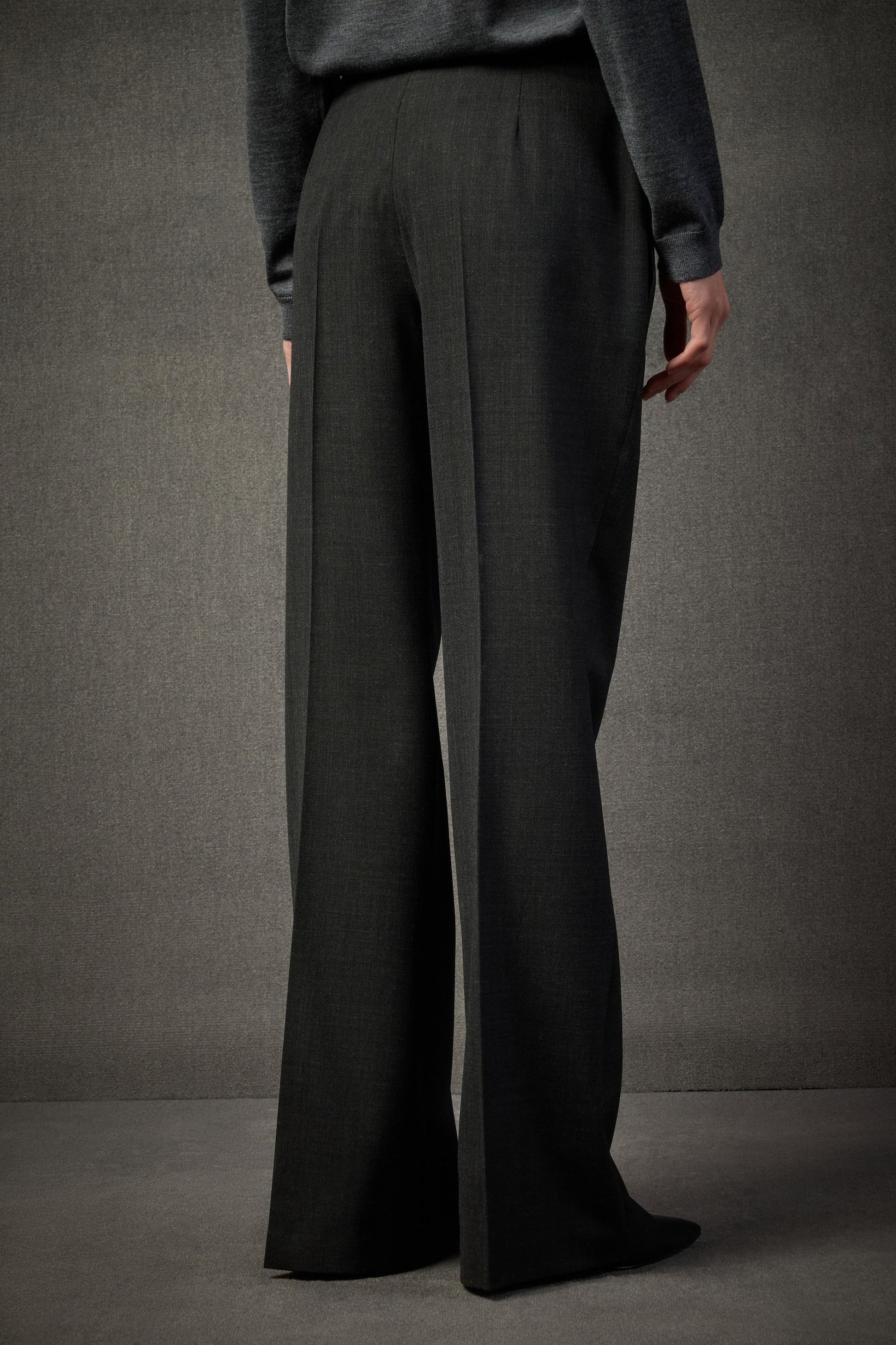 Pantalons amples de llana fresca amb prisats premsats al davant, tanca oculta i butxaques laterals inclinades.