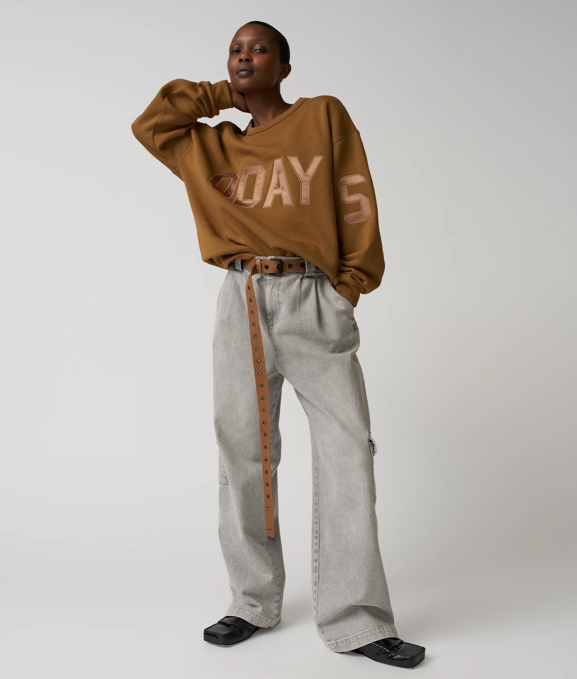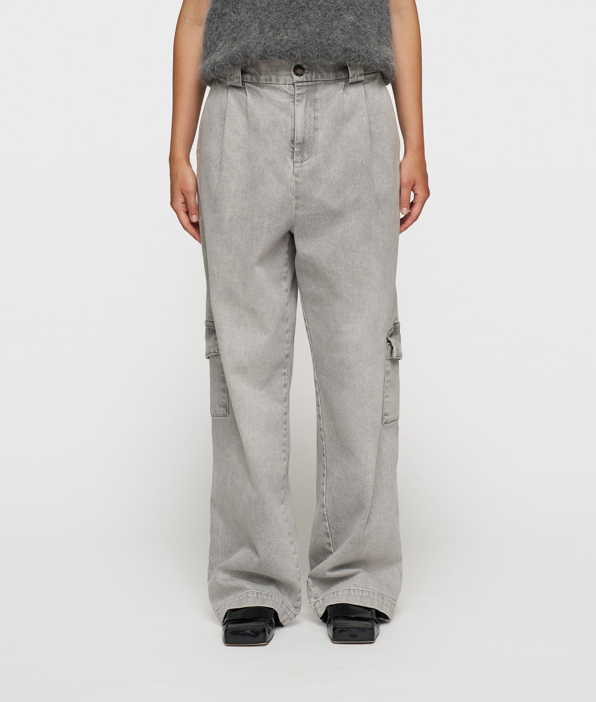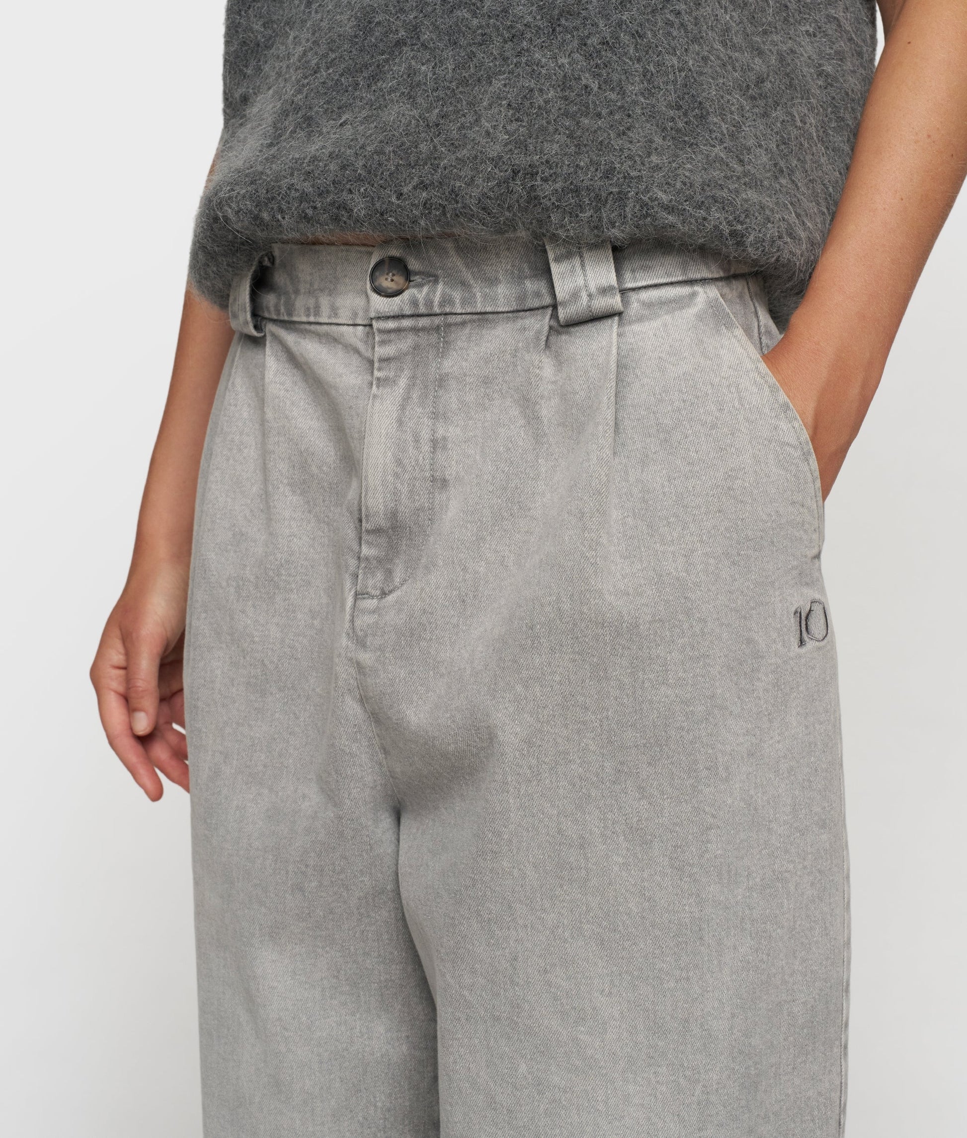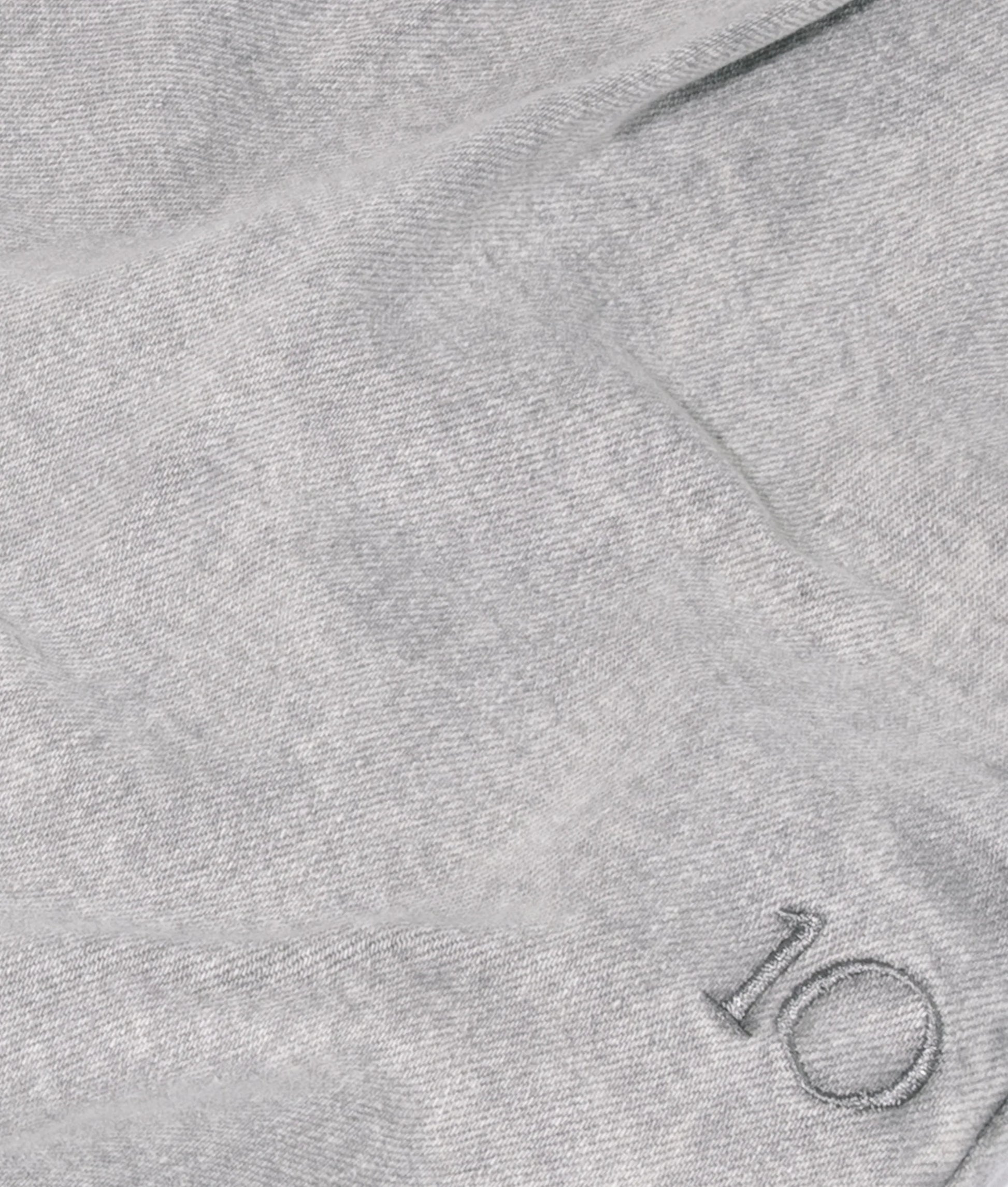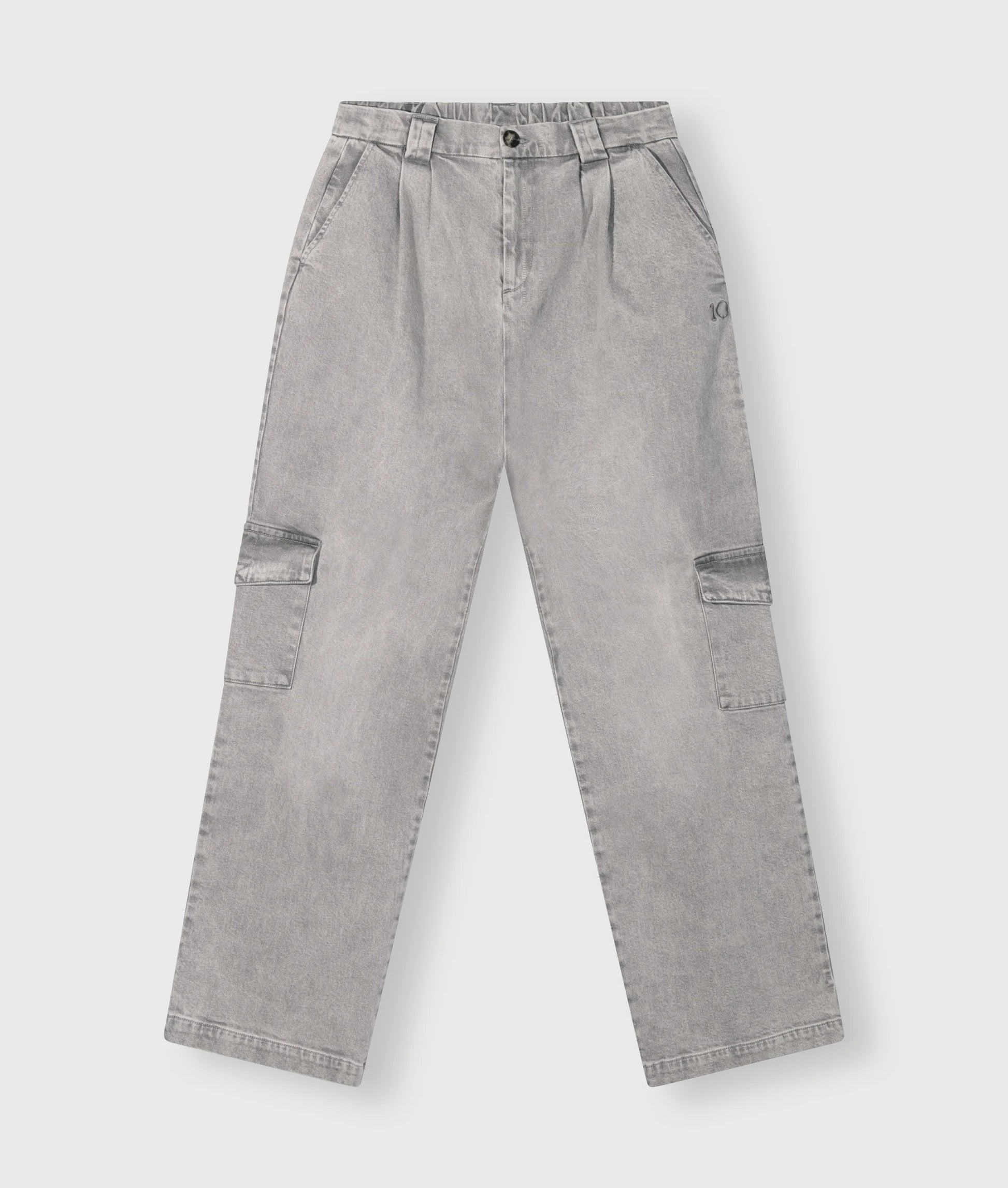 Pantalones cargo jogger de corte holgado, confeccionados en suave felpa de algodón orgánico con certificación GOTS. Cuentan con cintura con trabillas, bolsillos laterales inclinados, cierre con botón y cremallera, bolsillos cargo en las piernas, un bolsillo trasero falso y un monograma «10» bordado debajo del bolsillo izquierdo.