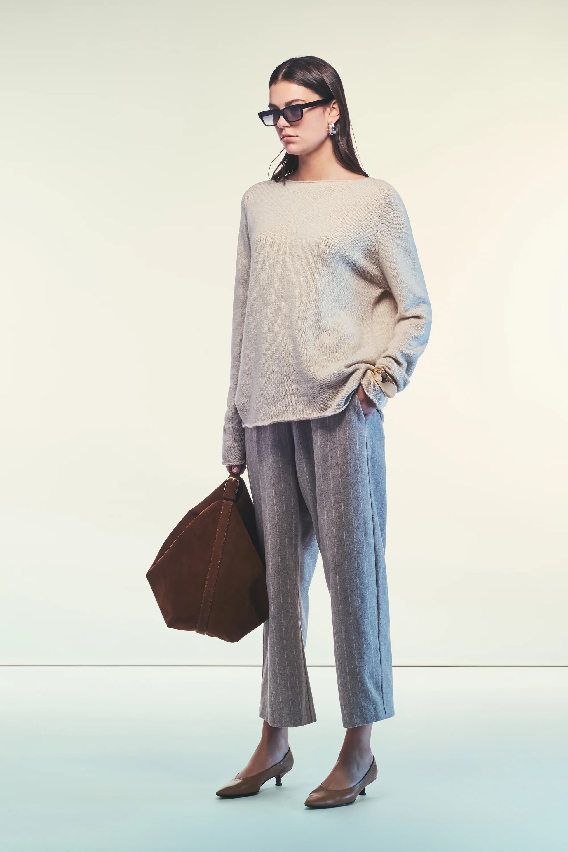 Pantalons curts de cashmere. Tall ample amb cintura elàstica, butxaques laterals i pernes fins al panxell.