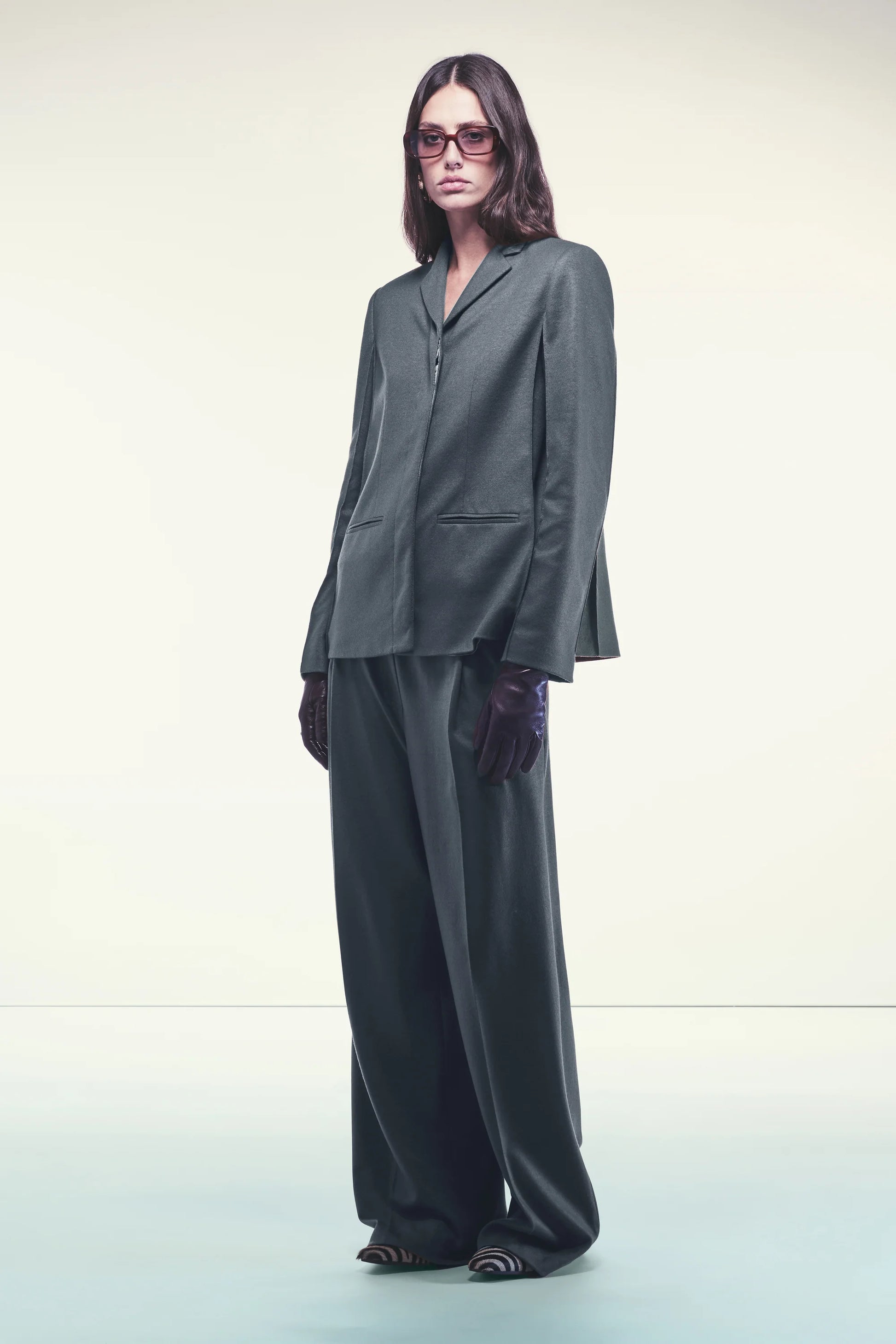 Pantalons palazzo de caixmir. Cintura alta, tanca de cremallera i botó. Cama ampla amb plec premsat. Longitud extrallarga.