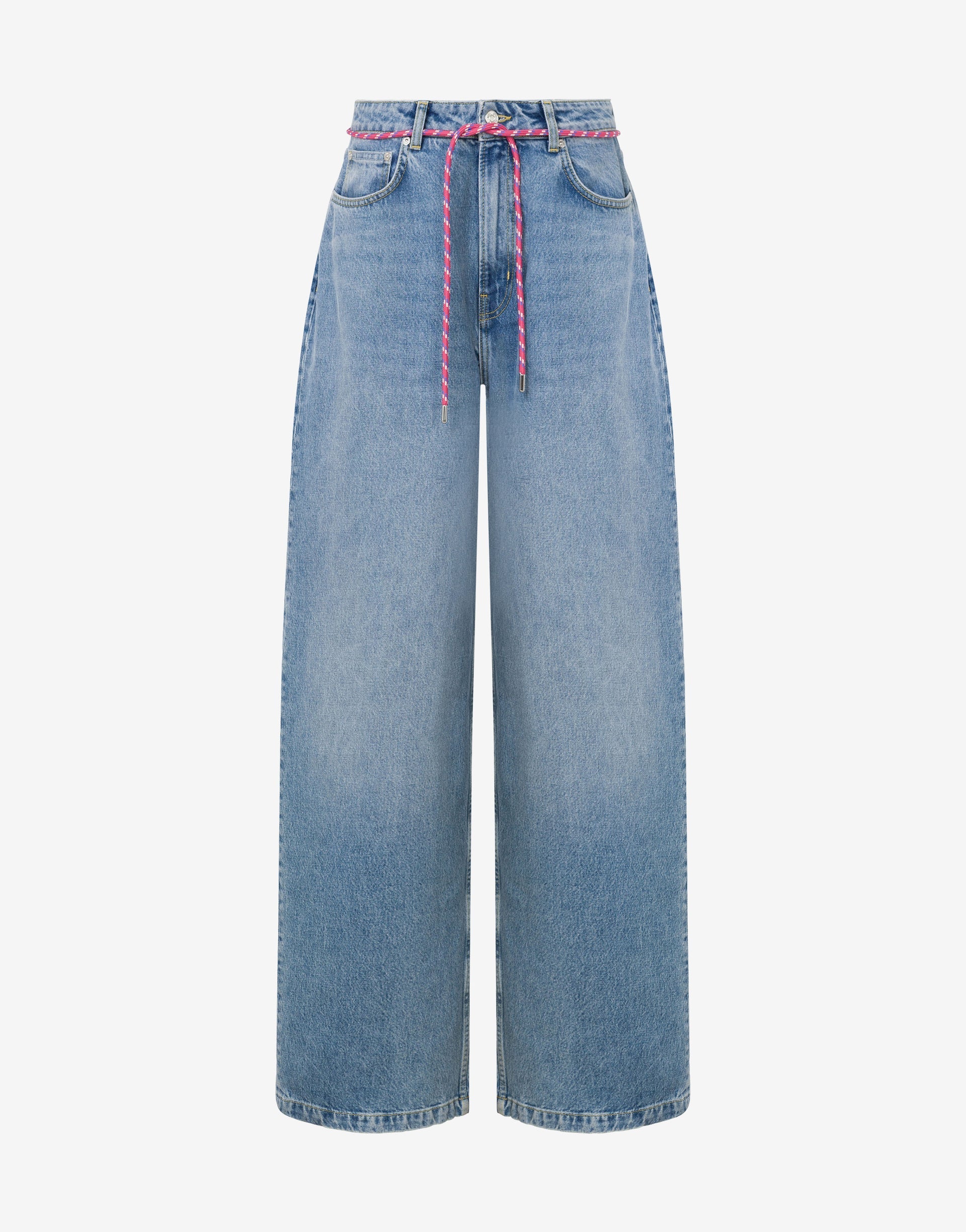 Pantalons texans de cinc butxaques amb tall oversize , cintura amb cordó i pegat amb el logotip a la part posterior.