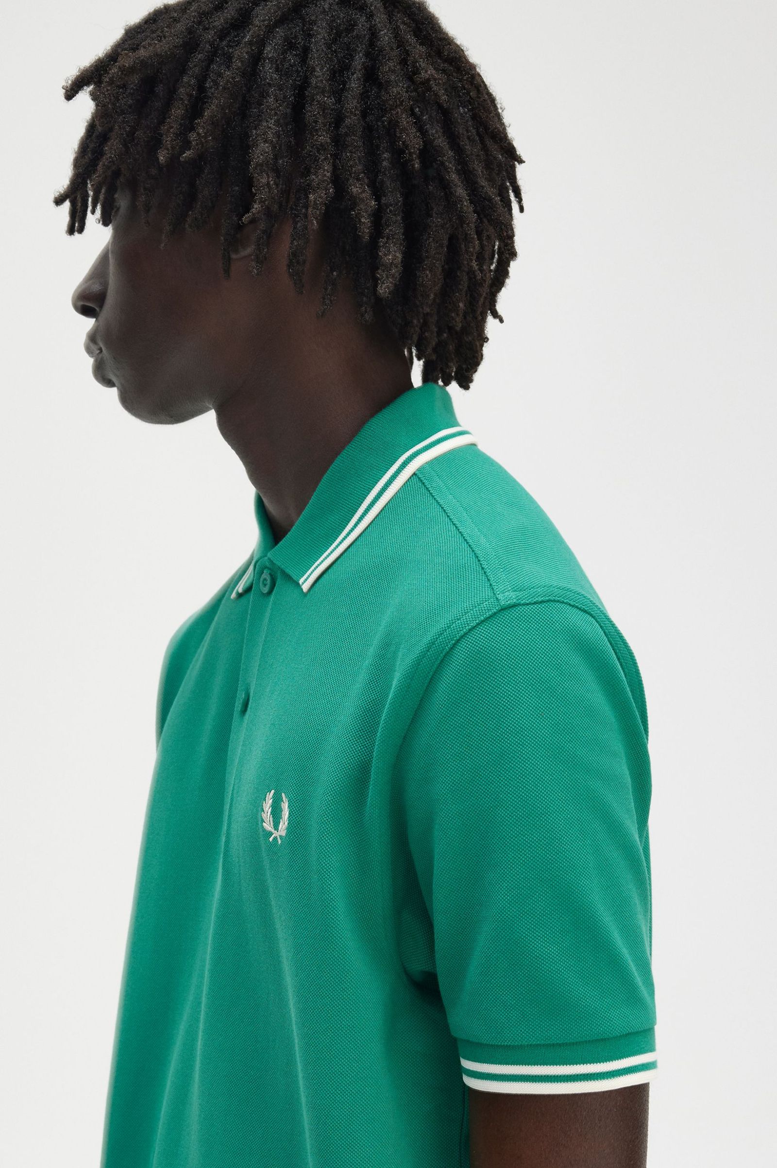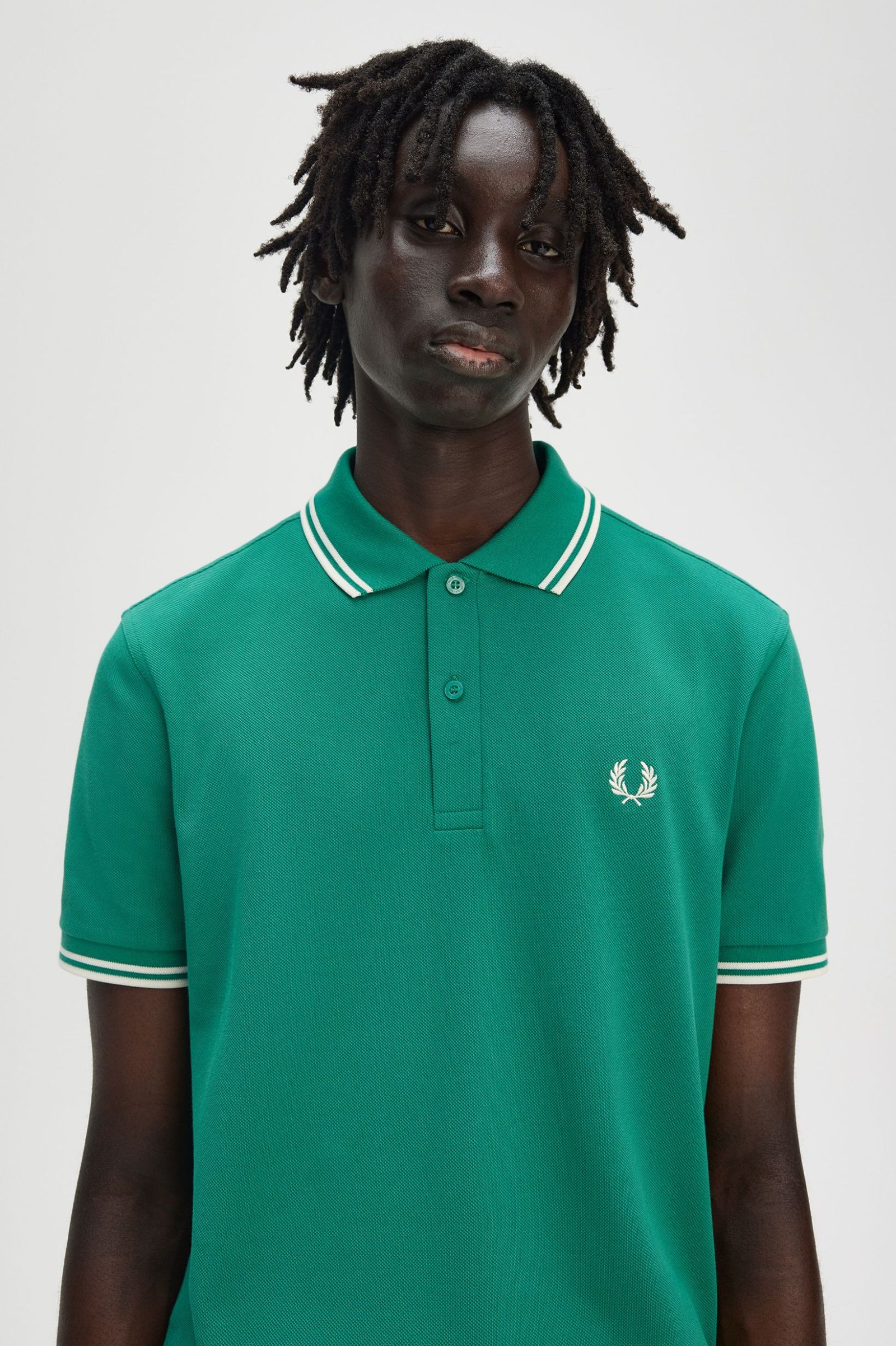 El pol Fred Perry amb rivet amb dues franges. Confeccionat al nostre clàssic teixit de piqué de cotó i dotat d'una nova versió contemporània de l'inconfusible tall estilitzat de Fred.