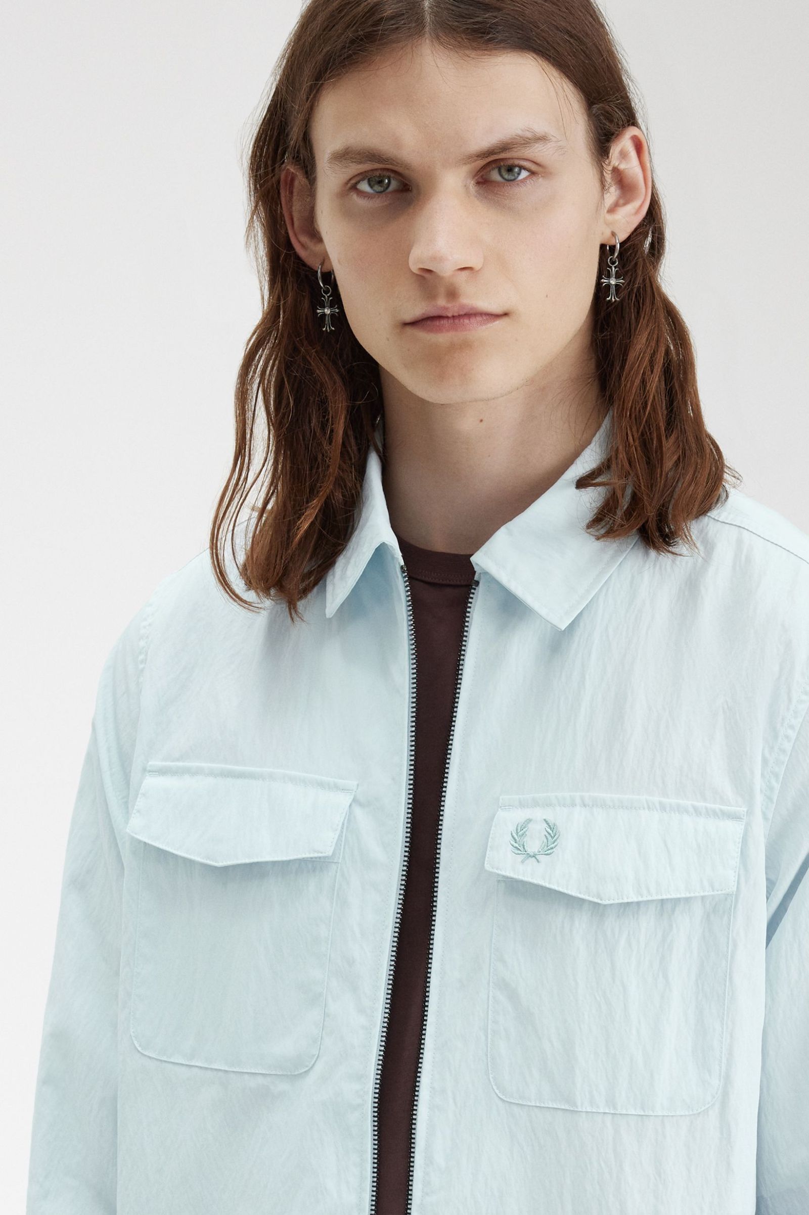 Aquesta sobrecamisa amb cremallera està confeccionada amb teixits reciclats d'efecte arrugat, i s'ha dissenyat amb subtils elements bàsics de la roba utilitària, com ara grans butxaques de pegat al pit i coll obert. Una sobrecamisa versàtil per a les properes sortides nocturnes.