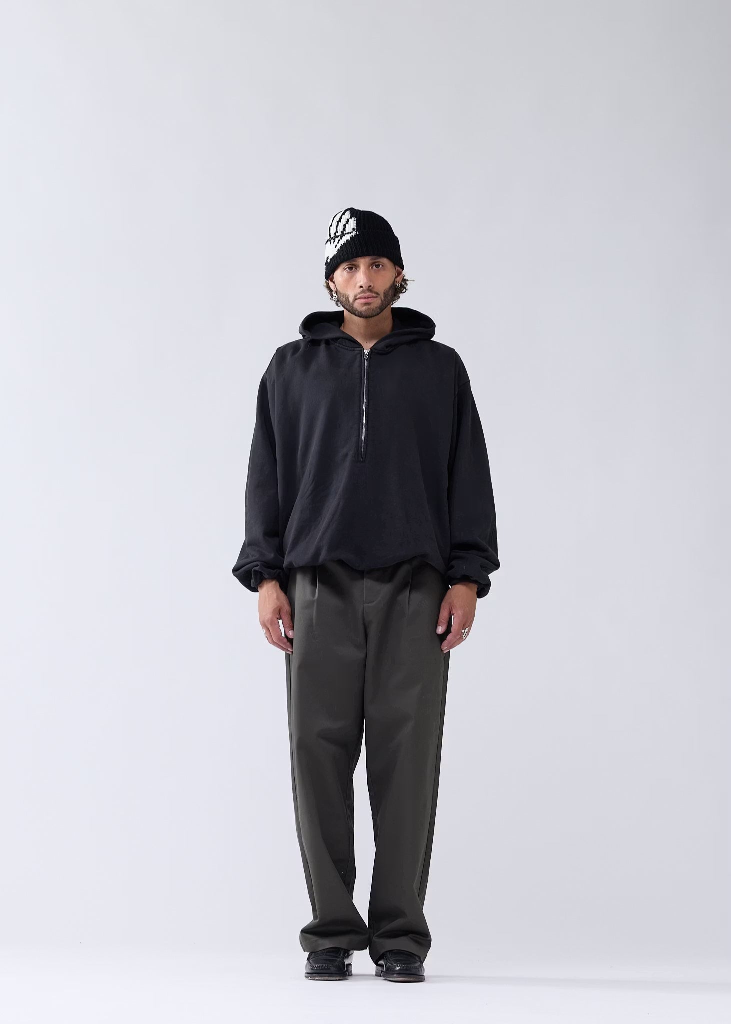 Dessuadora amb caputxa clàssica amb mitja cremallera i tall oversize unisex amb aspecte inflable. Detall de rebló metàl·lic a la part davantera.