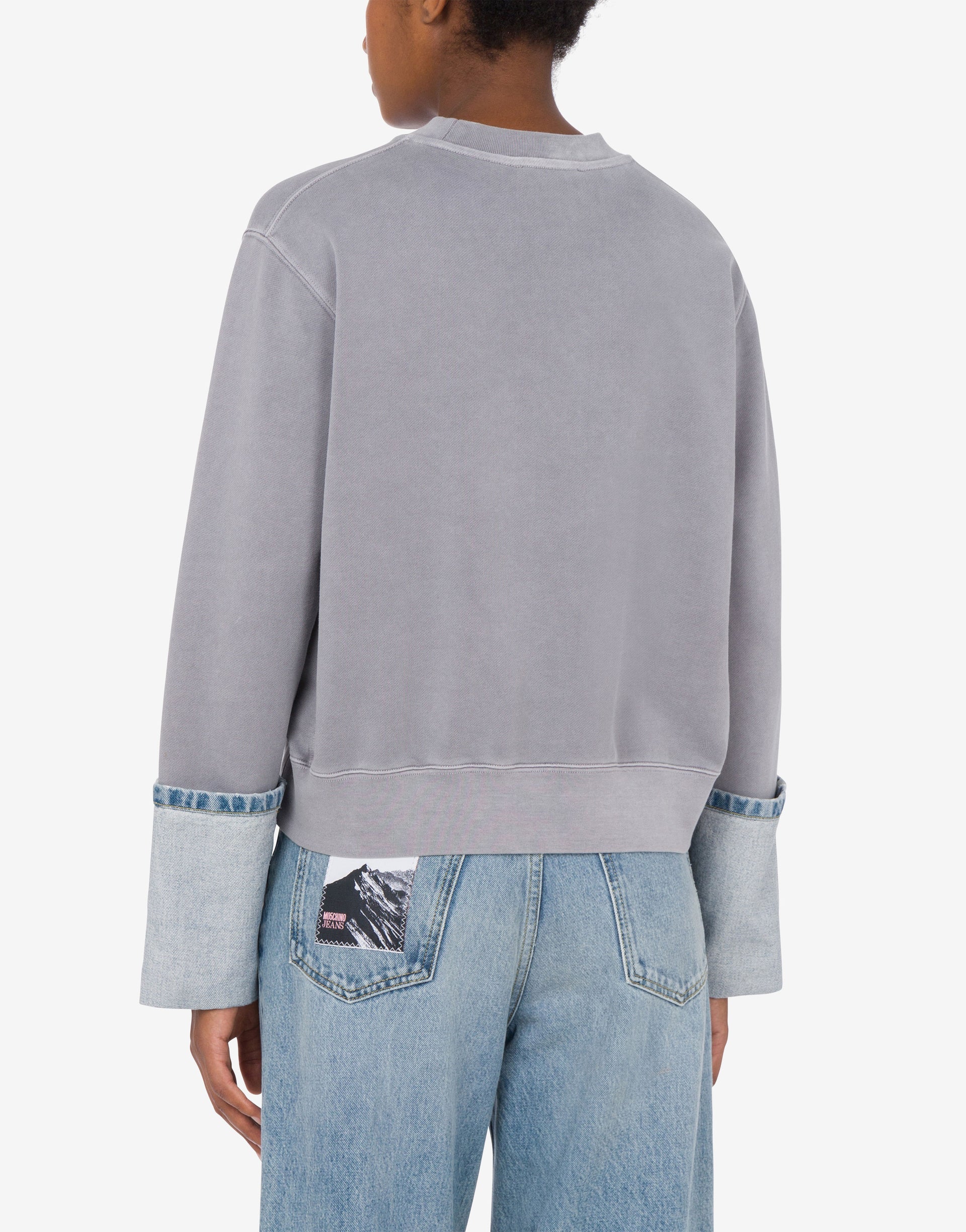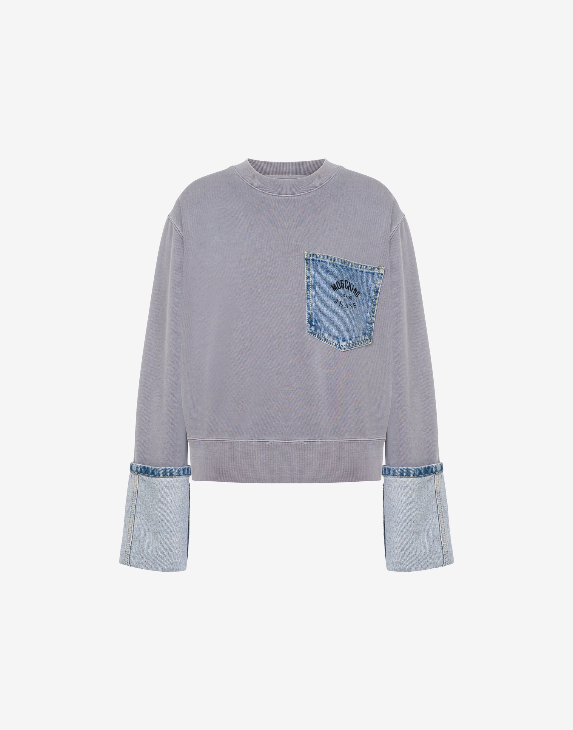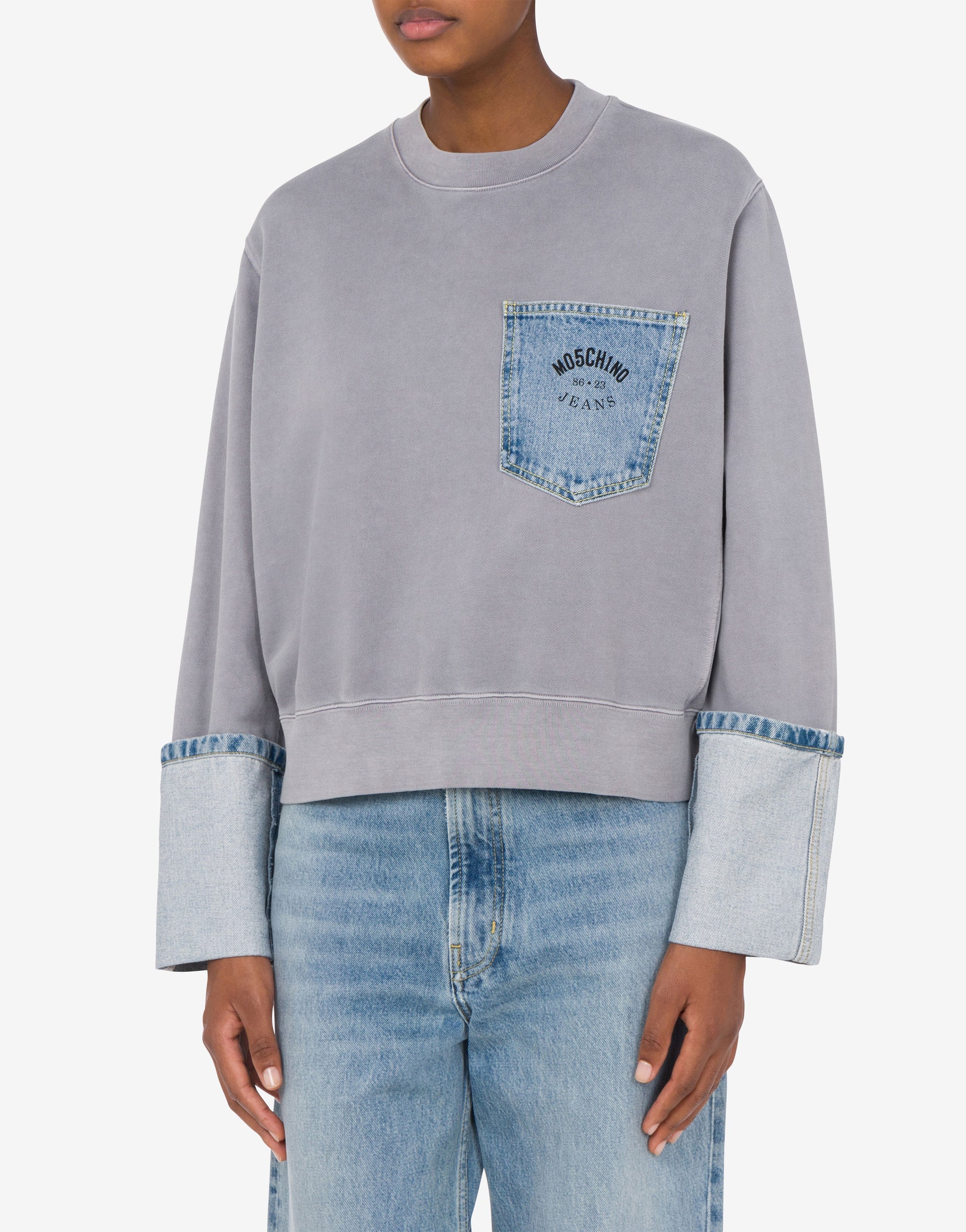 Dessuadora de cotó amb baix de màniga d'efecte tornat i butxaca davantera amb logotip vaquer.