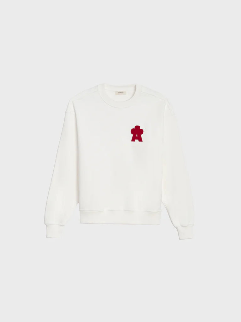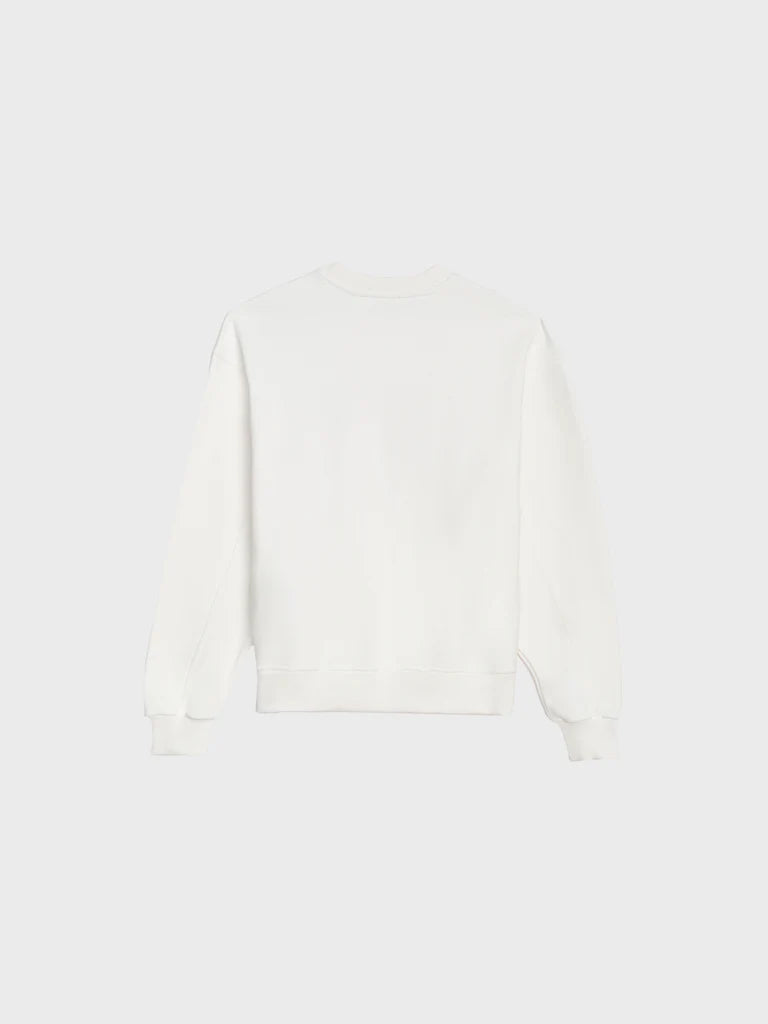Dessuadora de coll rodó amb vora i punys de canalé, sobre ajustament i estampat al pit.