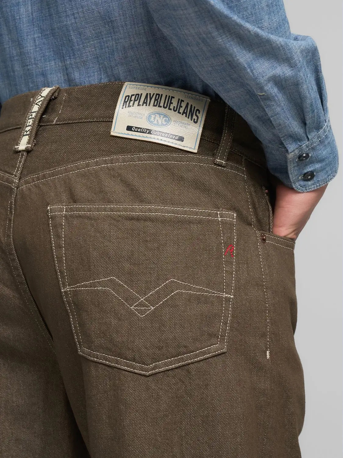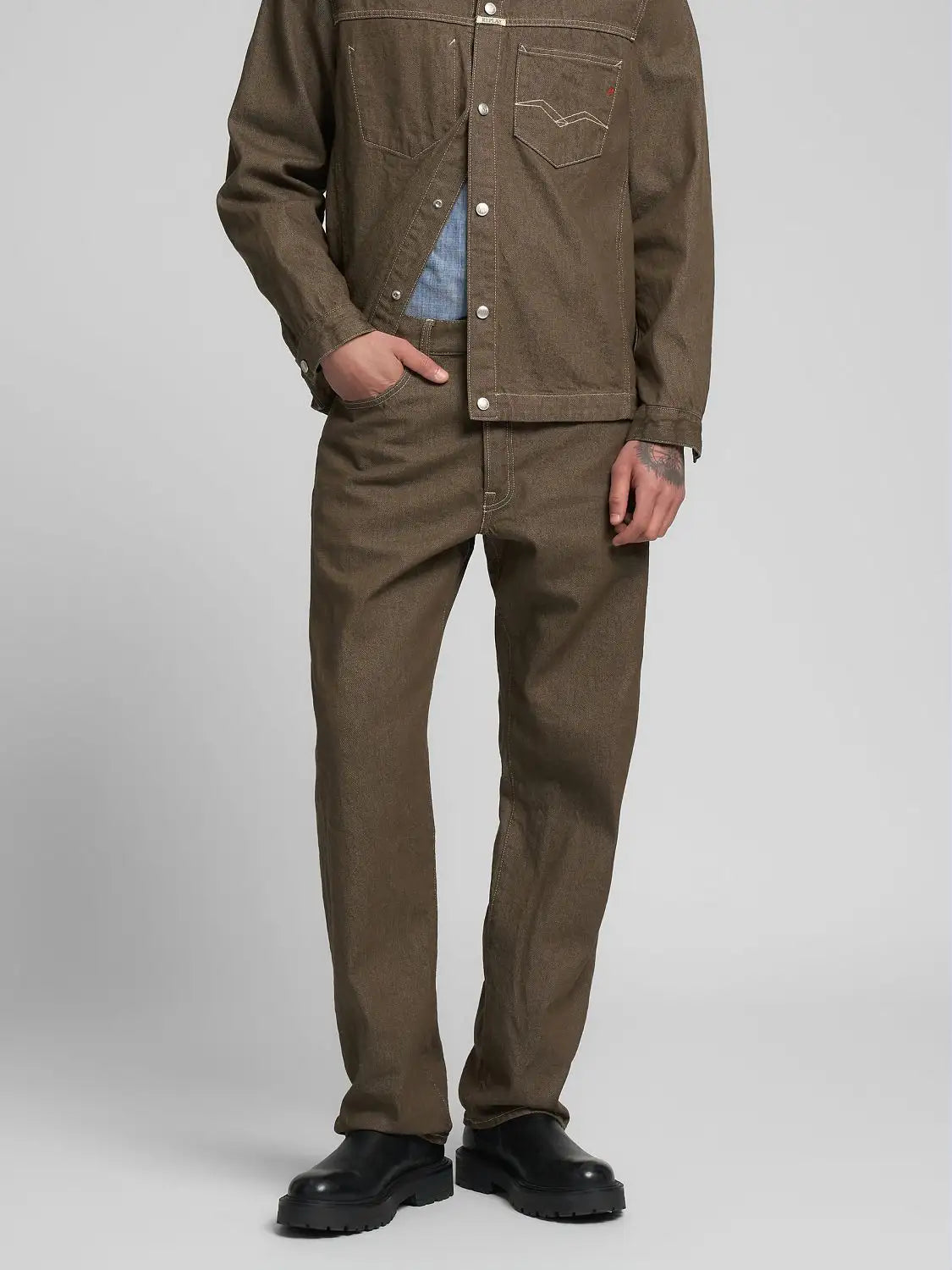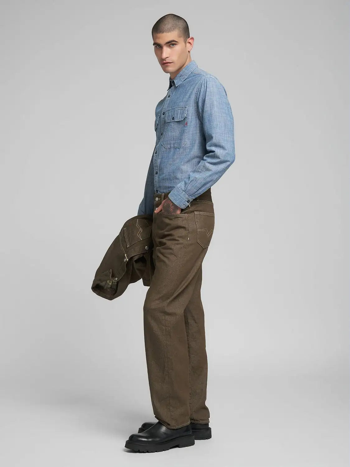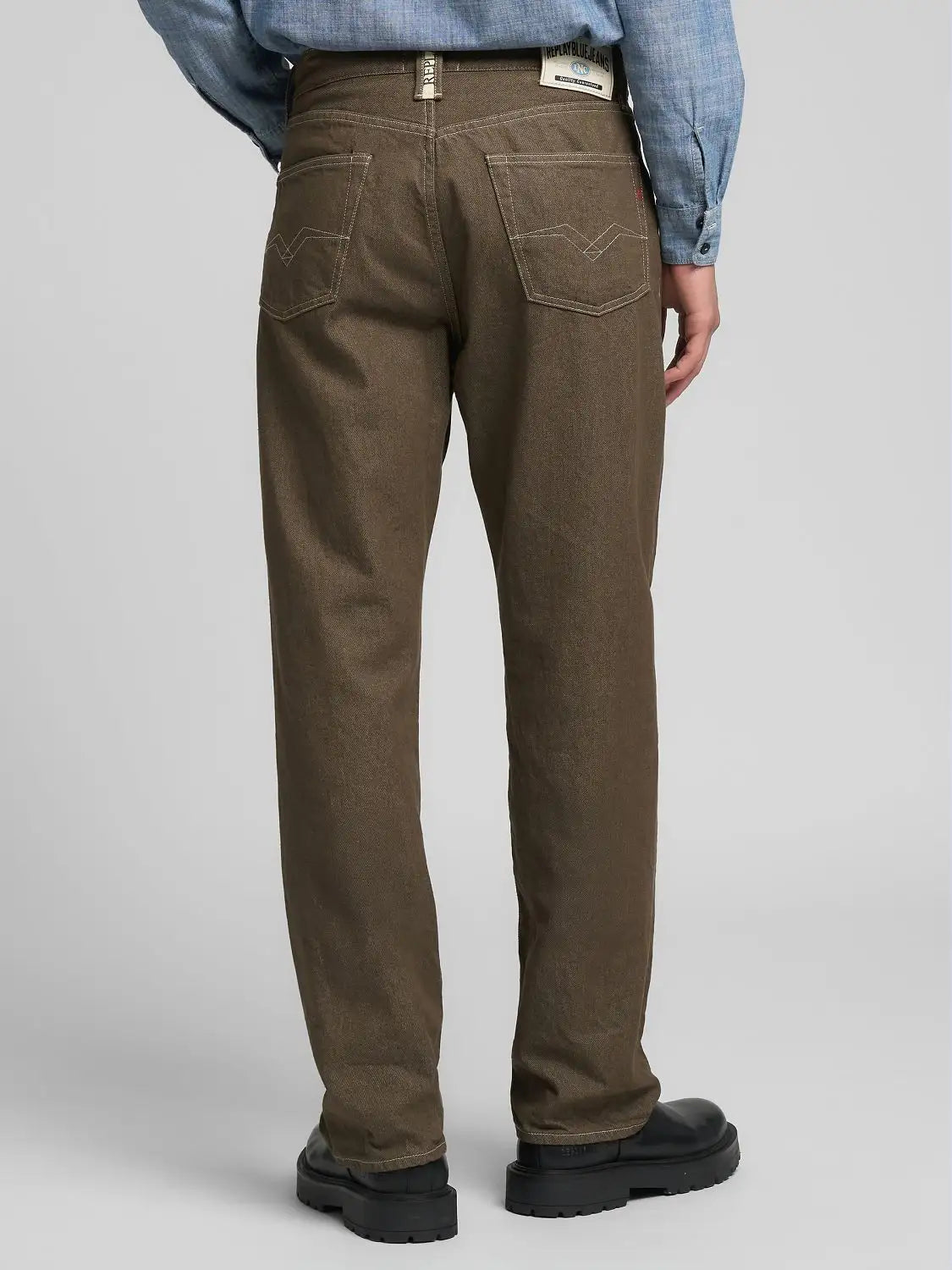 Texans de tall recte amb cintura alta i camal recte des del maluc fins al baix per a un ajustament còmode. La icònica costura d'ala de gavina caracteritza les butxaques del darrere, una de les quals porta el brodat R, mentre que una de les butxaques davanteres presenta una petita aplicació personalitzada.