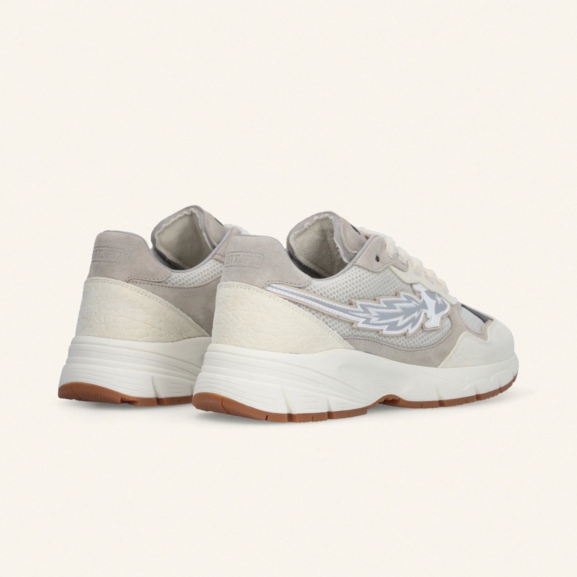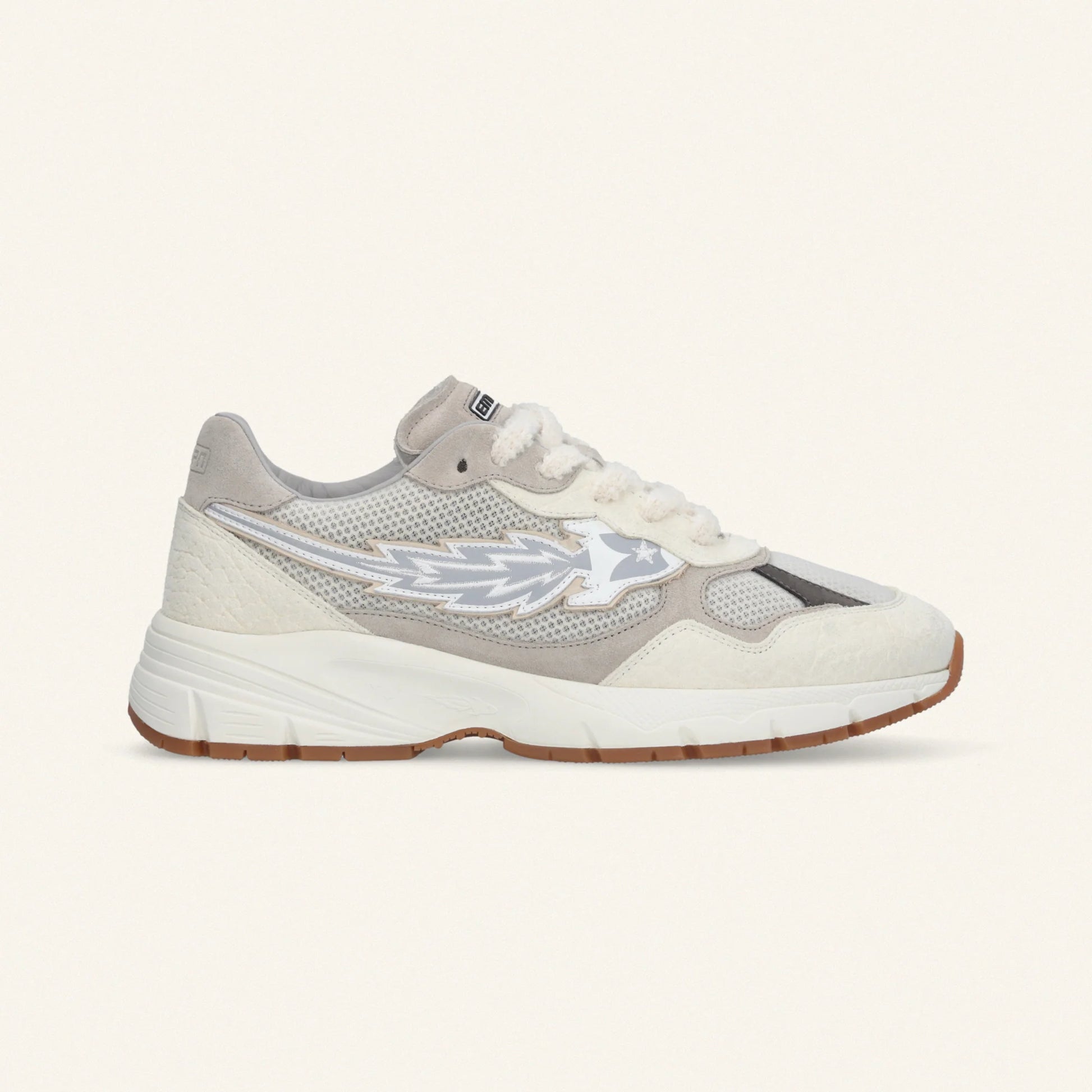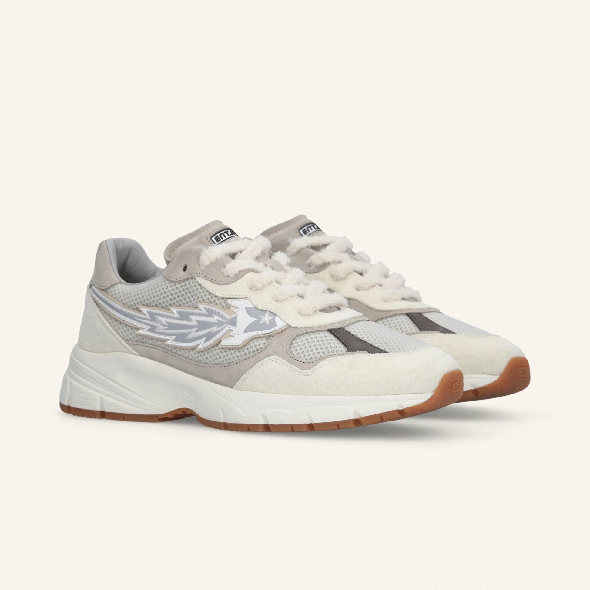 Un disseny Made in Italy, dinàmic i minimalista que evoca una forta identitat compartida. El disseny d'ante i malla de color blanc llet i sorra amb l'icònic logotip d'Ej Rocket al lateral fa que la sabatilla sigui perfecta per a qualsevol ocasió.