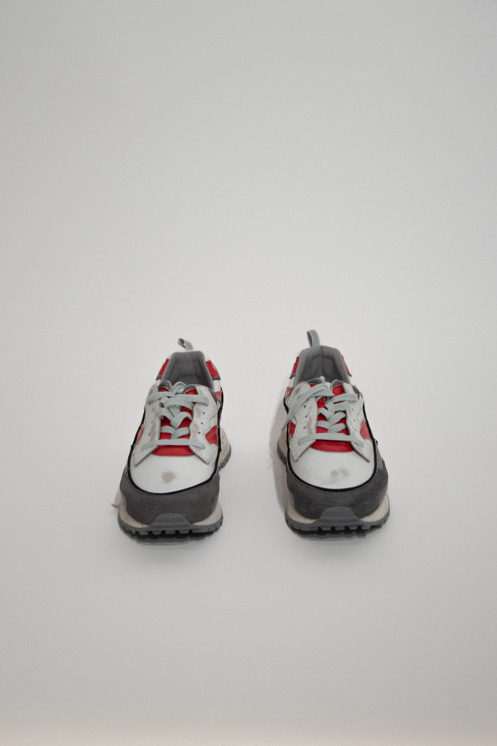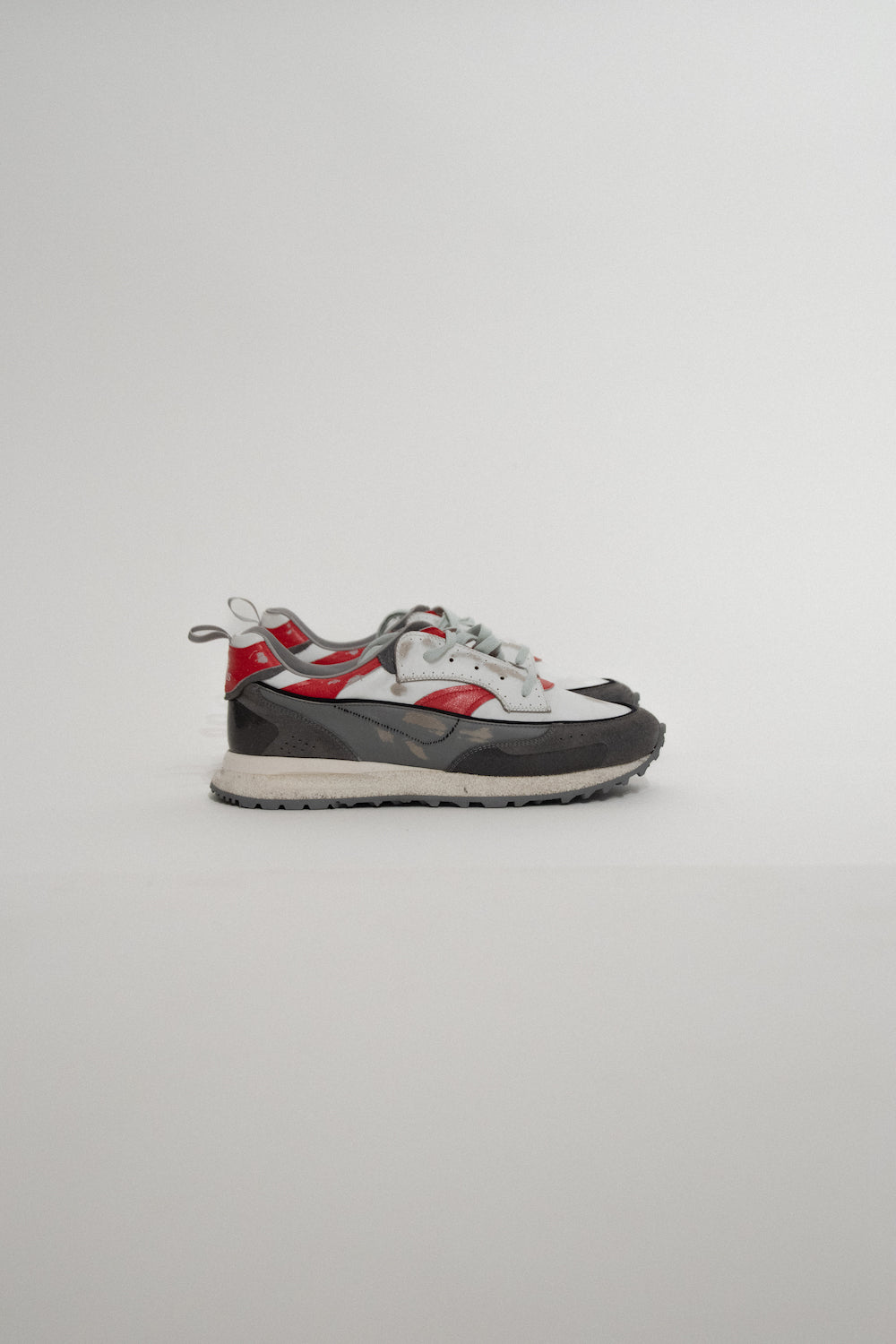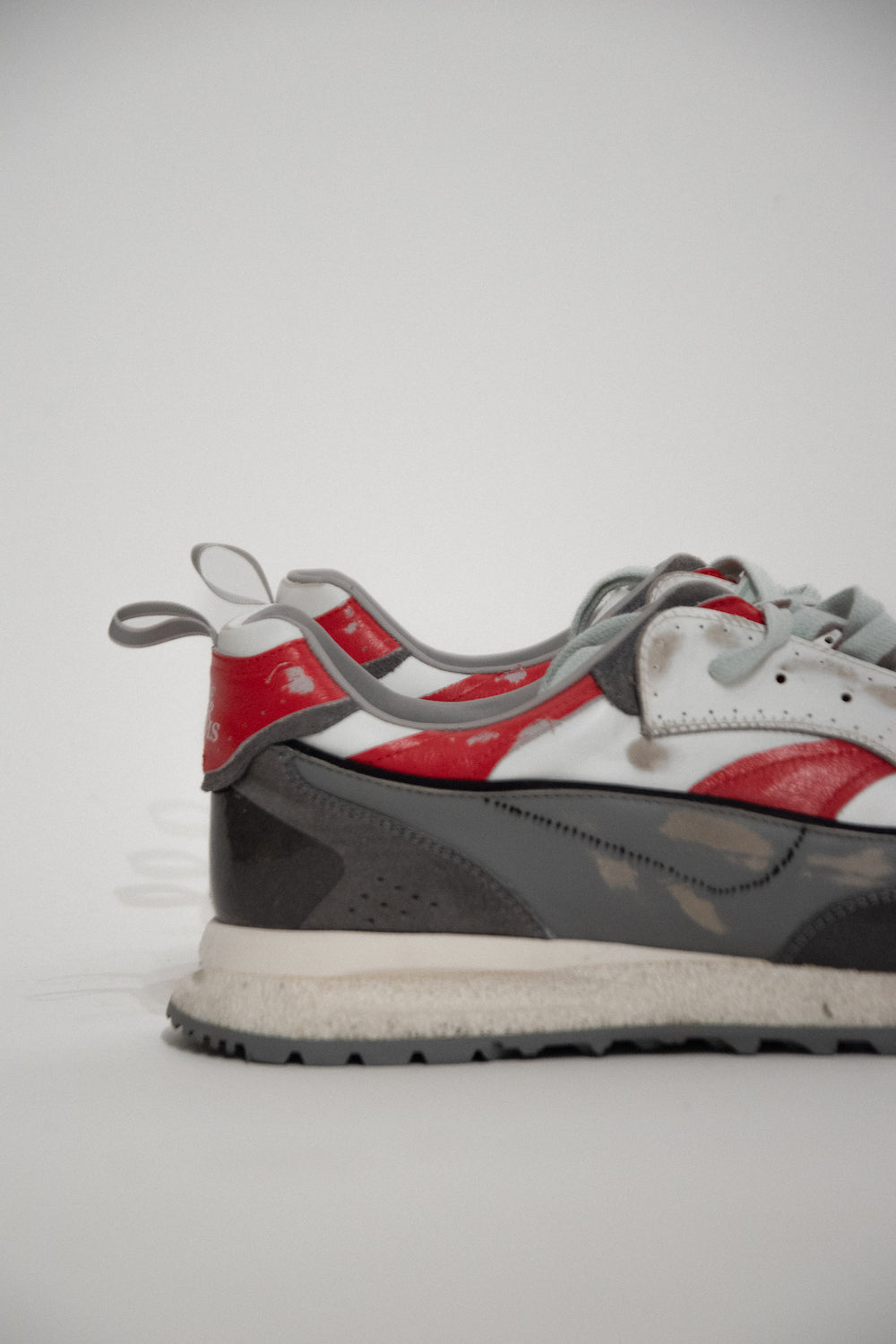 Sabatilles contemporànies, fabricades a Itàlia, que fusionen elements de disseny dels anys 80 i principis dels 2000, rematades amb una exclusiva tira asimètrica.