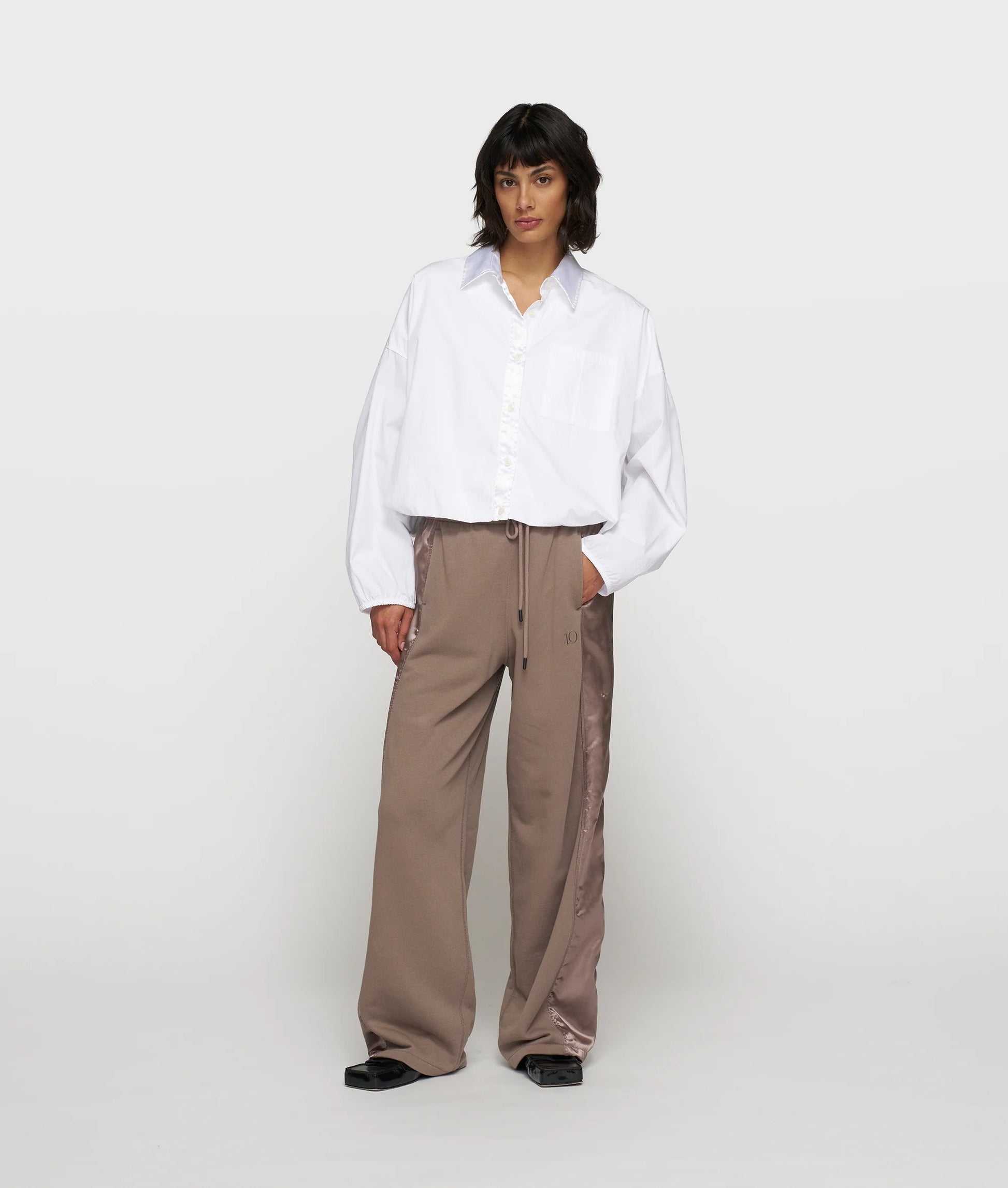 Blusa corta de corte holgado, confeccionada en algodón ligero. Diseñada con cuello y cierre de botones, dobladillo y puños elásticos, forro de algodón suave, bolsillo de parche en el pecho y monograma «10» bordado en la manga izquierda.