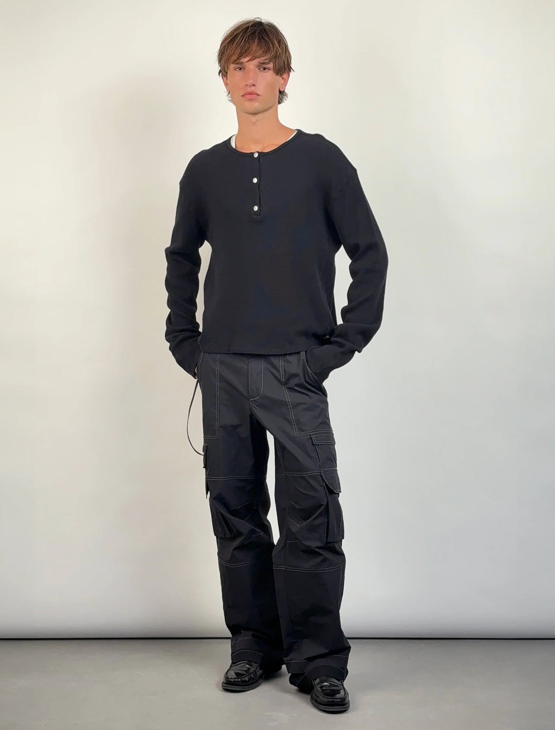 El modelo mide 187 CM (6'10'') y lleva una talla M.