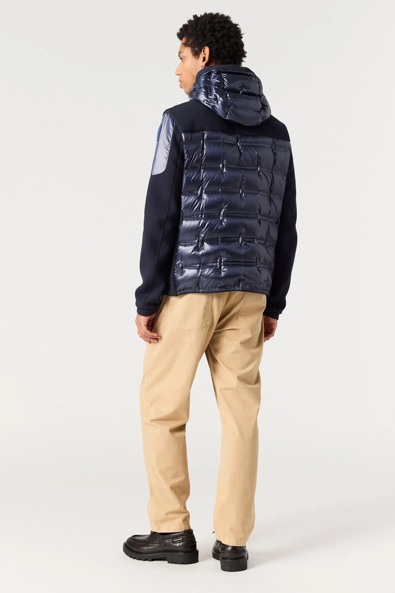Gyles es una chaqueta híbrida con capucha de la nueva línea Piquet Puffers que combina minirripstop de nailon con relleno de plumón y piqué elástico de algodón y poliéster. El exclusivo patrón acolchado y sellado realza el diseño de esta prenda.