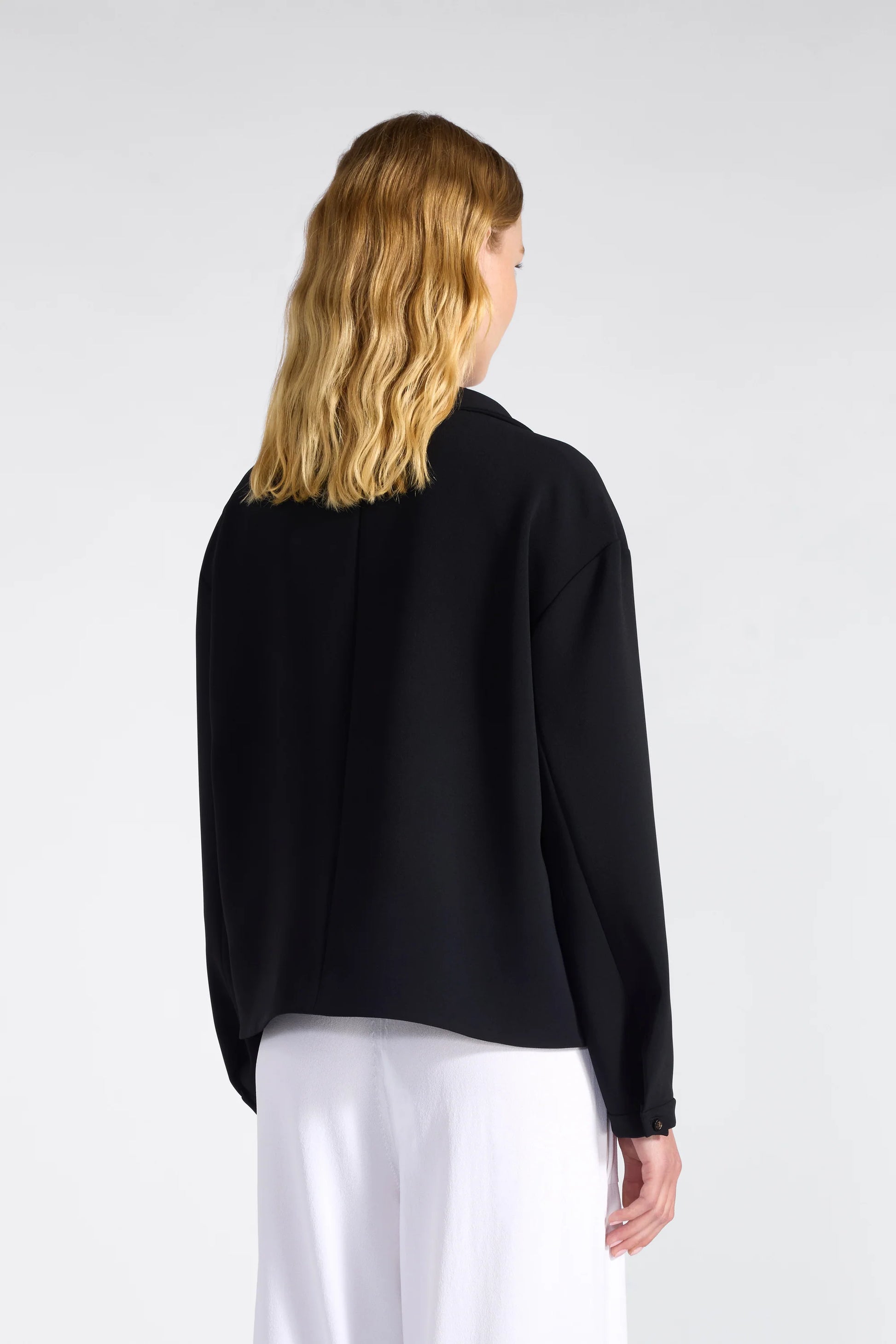Blazer cadi de una sola fila de botones con solapas, cierre en el lado izquierdo con botones de tono oscuro. Mangas con puños y botones, silueta suave.
