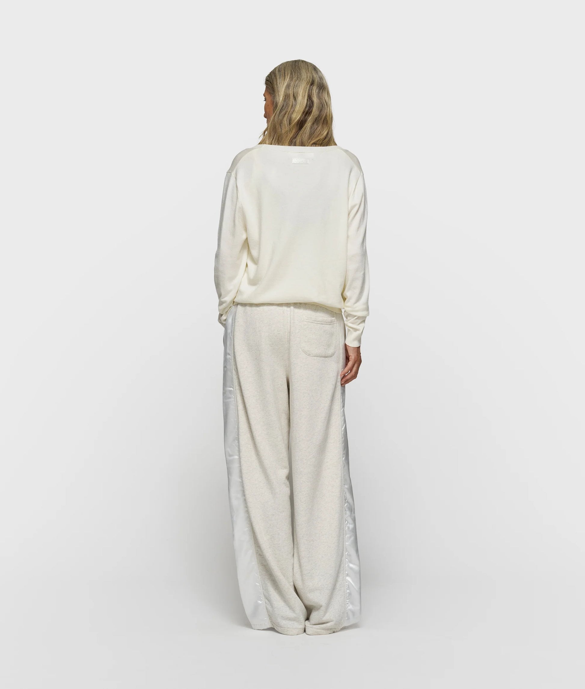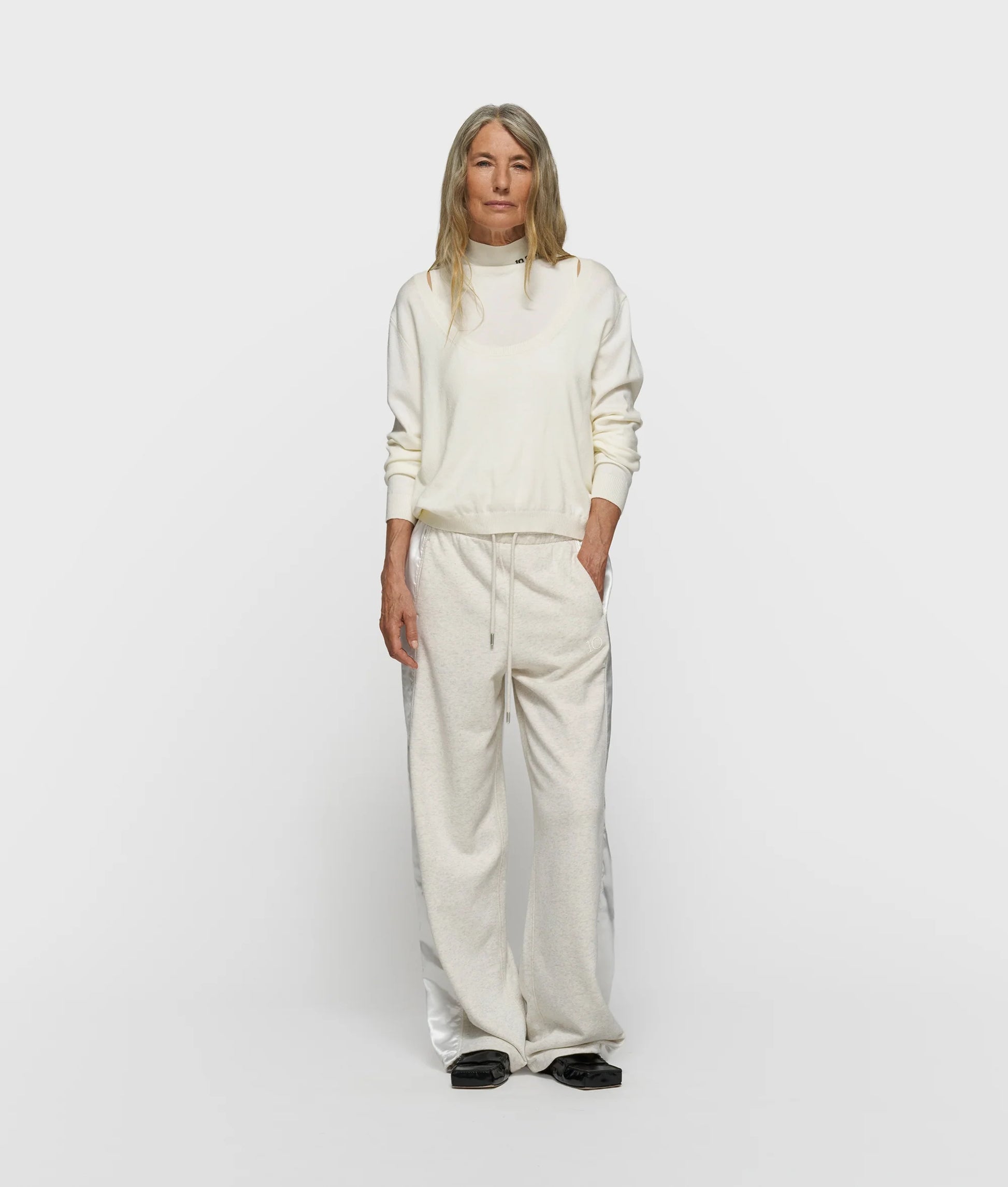 Jersey de punto de corte recto con cuello profundo, confeccionado en suave tejido técnico. Cuenta con ribetes acanalados, hombros caídos, un parche transparente con la inscripción «10DAYS» en la espalda y una pequeña etiqueta con el eslogan en la manga izquierda.