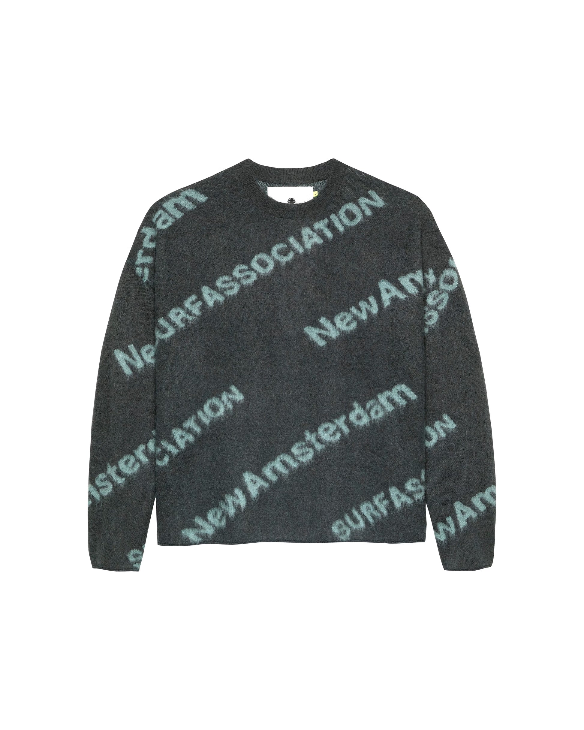 El jersey Jacquard Knit de New Amsterdam Surf Association es un jersey unisex de cuello redondo con un diseño de logotipo jacquard en toda la prenda.