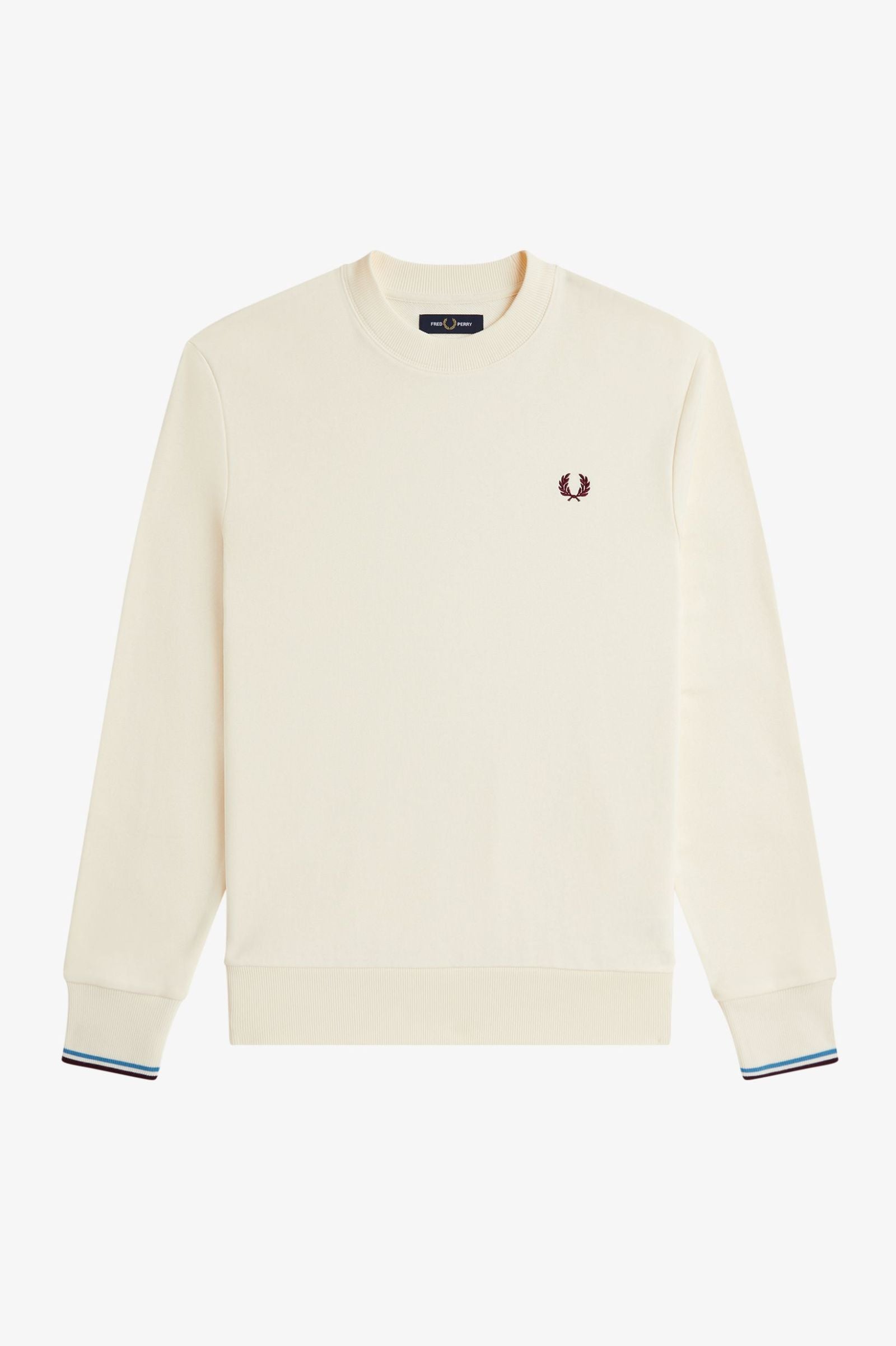 Adoptada por los atletas en sus sesiones de entrenamiento invernales, la sudadera de algodón es un clásico atemporal. La sudadera con cuello redondo presenta sutiles detalles de diseño de Fred Perry, con doble ribete en los puños y la inconfundible corona de laurel bordada en el pecho. Diseñada para combinar con otras prendas.
